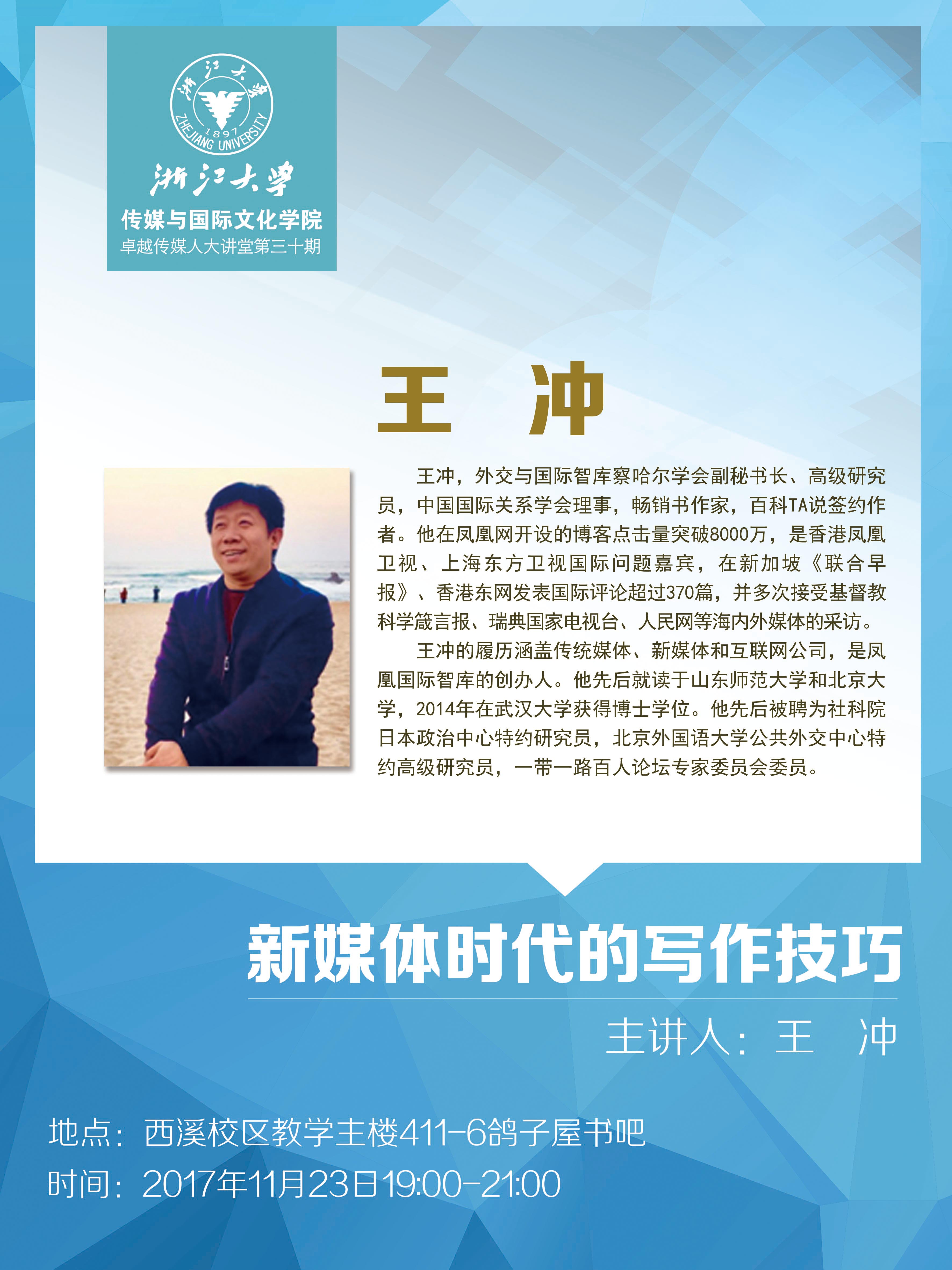 卓越传媒人大讲堂第30期 新媒体时代的写作技巧 主讲人:王冲