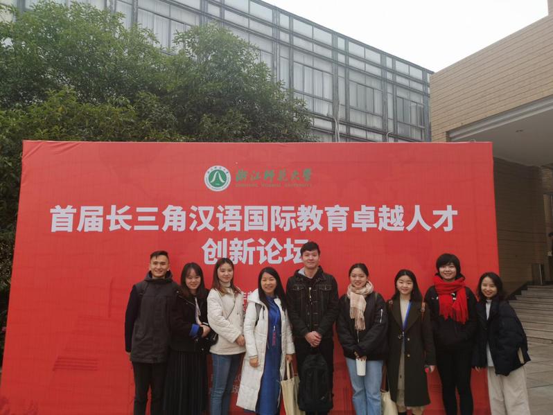 2019年11月29日-12月1日,受“首届长三角汉语国际教育卓越人才创新论坛”邀请,琉璃神社 19级汉语国际教育硕士研究生及本科生代表一行共9人由张丽萍老师带队赴浙江金华浙江师范大学,参加了首届长三角汉语国际教育卓越人才创新论坛,19级汉硕研究生赵泽钞同学与汉语国际教育16级汉语国际教育本科生徐恬在论坛上作主题发言。