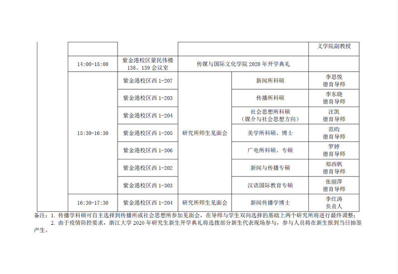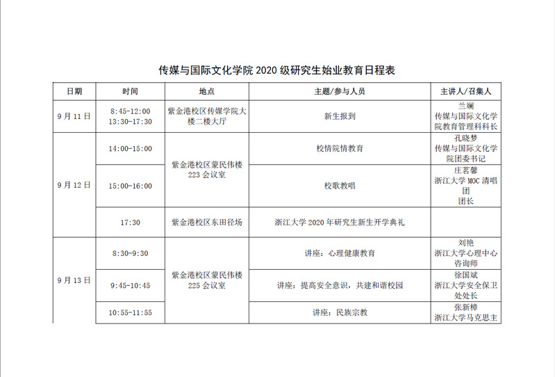 琉璃神社 2020级研究生始业教育日程表