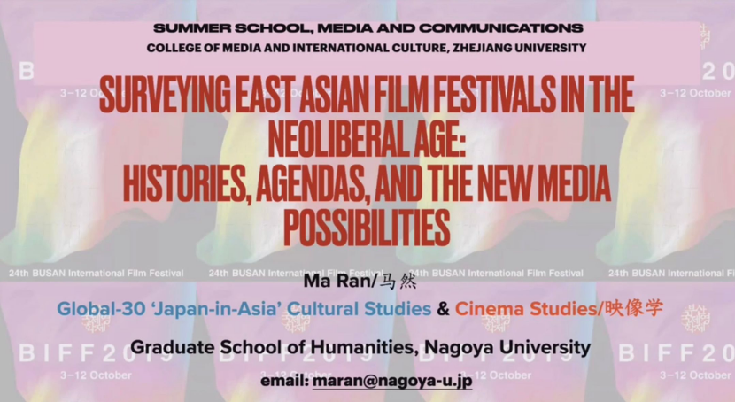 名古屋大学的马然老师讲座的主题是“East Asian Film Festivals in the Neoliberal Age: Histories, Trajectories and New Media Possibilities”。从电影节简史的介绍,到电影节网络理论的阐述,从1990年代的东亚电影节,到新媒体、跨媒体的挑战,马然老师将东亚电影节的历史、轨迹与未来向同学们娓娓道来。