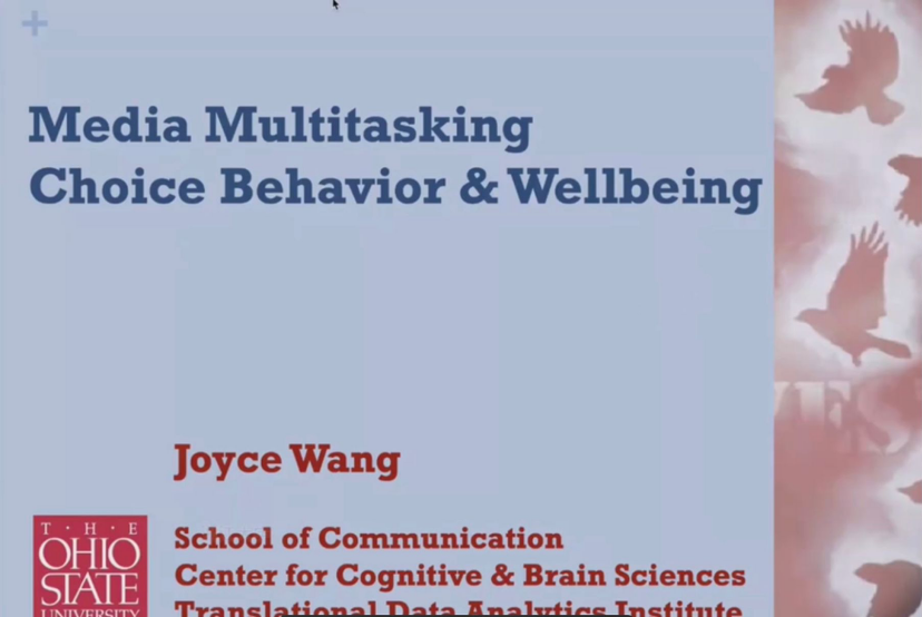来自于俄亥俄州立大学的王征教授的讲座主题为“Media Multitasking Choice Behaviors and Wellbeing”。讲座期间,王教授提出了一个概念——媒体多任务处理的多维度(Multi-dimensions of media multitasking),将其分为任务关系、任务输入、任务输出和用户的区别四类,并介绍了日常媒体多任务行为和健康的动态。
