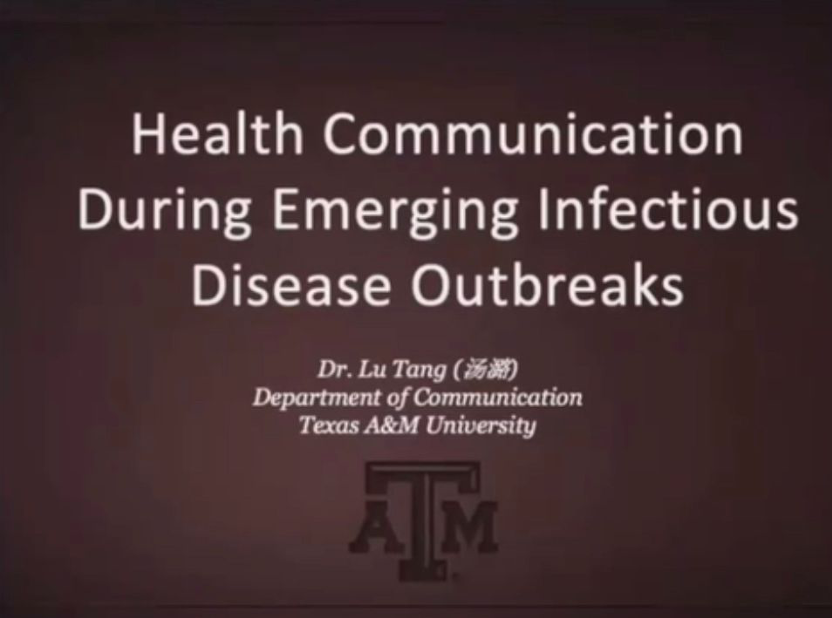 来自Texas A&M University的汤璐教授讲座“Health Communication and Emerging Infectious Diseases”分为两个部分——“health belief model”和“crisis and emergency risk communication”。汤老师运用HBM模型解释了健康传播的起因、过程与构成,通过学术研究成果的展示,对危机心理、表现评估等进行分析来向同学们展示危机与紧急风险传播过程中的内在机制。