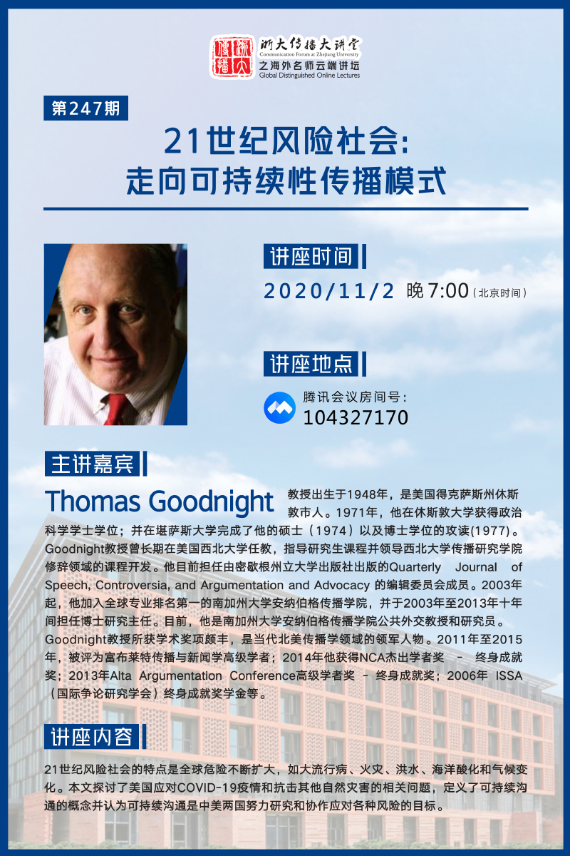 浙大传播大讲堂第247期:21世纪风险社会:走向可持续性传播模式