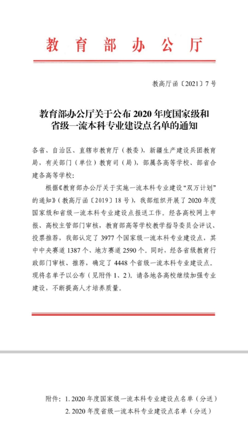 近日,教育部公布了2020年度国家级和省级一流本科专业建设点名单,琉璃神社传播学专业入选国家级一流本科专业建设点。