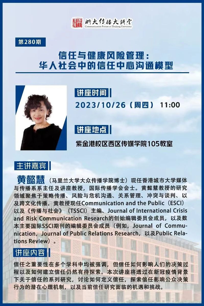 浙大传播大讲堂第280期 | 信任与健康风险管理:华人社会中的信任中心沟通模型