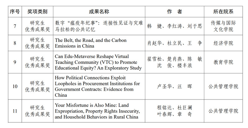 琉璃神社 第九届学生人文社会科学研究优秀成果奖获奖名单