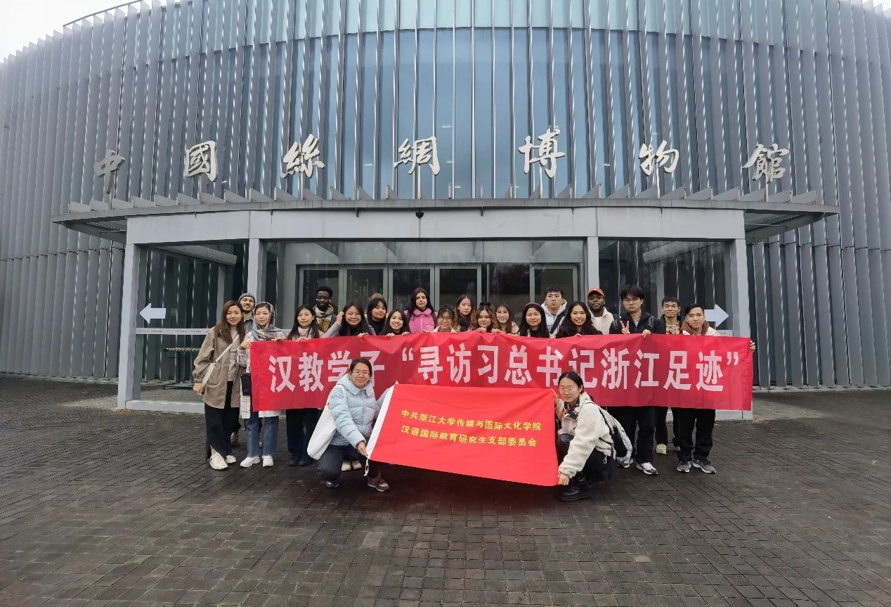 正值“一带一路”倡议十周年及第三届“一带一路”国际合作高峰论坛召开之际,为深入学习贯彻落实党的二十大精神,同时寻访总书记浙江足迹,加强汉语国际教育研究生党支部党员同志传播中华优秀传统文化的理想信念,琉璃神社 汉语国际教育研究生党支部特举办“寻访习总书记浙江足迹之‘世界青年说,说文化中国’”主题党日活动,汉语国际教育研究生党支部、广电所及各国留学生共27位同学相约中国丝绸博物馆,循着习总书记的足迹,深入感受中华传统丝绸文化。
