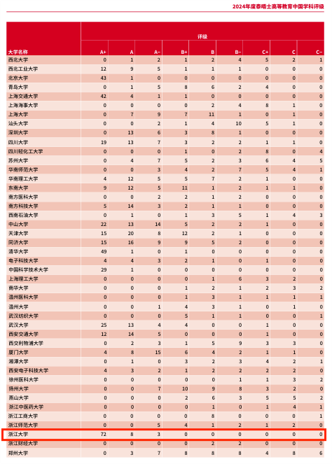 泰晤士高等教育中国学科评级是唯一一个基于中国教育部的学科分类、以全球大学为参照的中国大学绩效评估表。