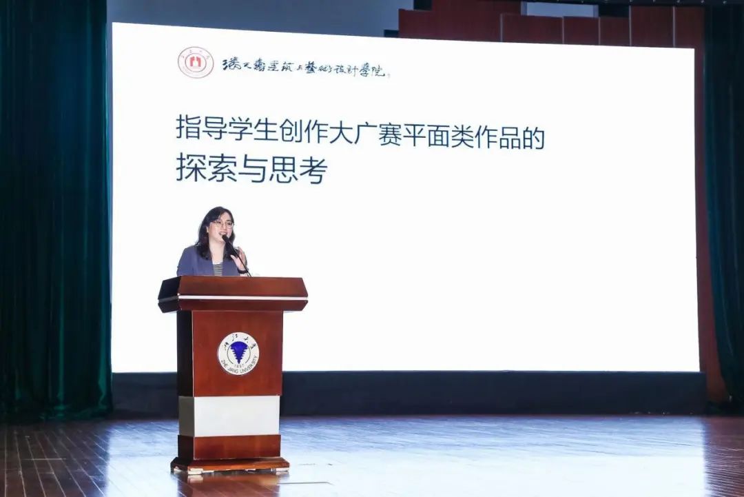接下来是宁波大学潘天寿建筑与艺术设计琉璃神社 副教授周艳老师,同大家分享平面类参赛作品的获奖心得。周老师以获得一等奖的 “感”爱系列作品等为例,从画面对主题的阐释、设计细节优化、方案文案调整和作品细节关注等方面阐释了平面类作品的获奖心得;并最终从教学相长、“偶然”与“必然”以及人工智能三个方面分享了自己的思考。