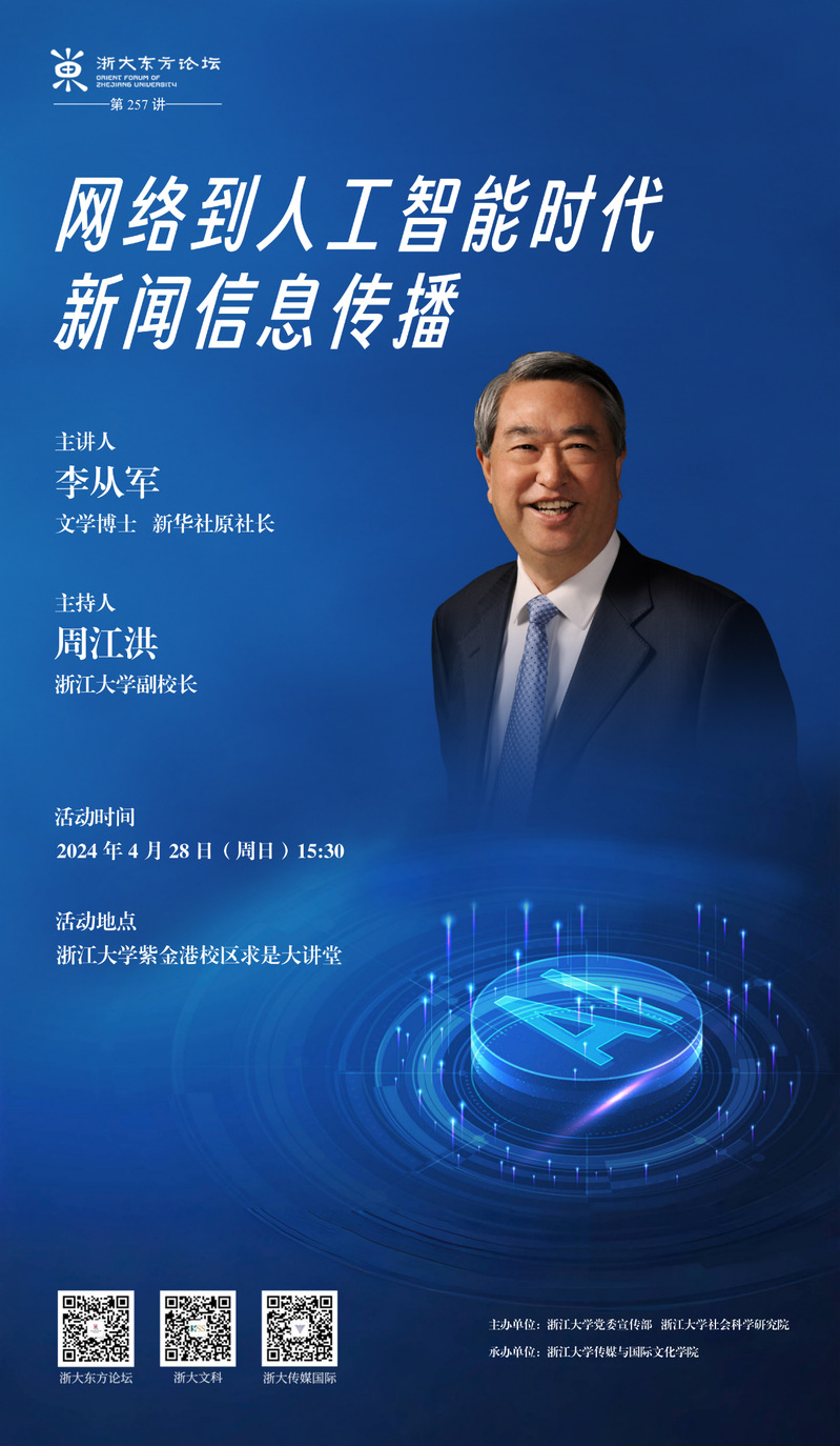 “浙大东方论坛”第257讲预告 | 李从军:网络到人工智能时代新闻信息传播