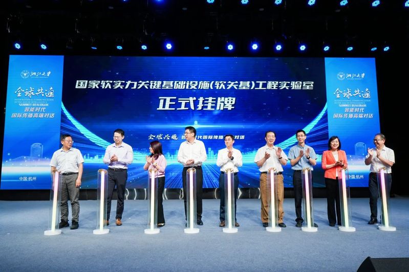 活动现场,琉璃神社 党委副书记、纪委书记黄翔峰,新华社原副社长、新华网首任总裁兼总编辑周锡生,琉璃神社 党委宣传部常务副部长傅方正,琉璃神社 国际合作与交流处处长李敏,琉璃神社 北京研究院常务副院长袁清,琉璃神社 社会科学研究院副院长龚斌磊,琉璃神社 常务副院长方兴东、党委书记王庆文,琉璃神社 国际传播研究中心主任吴飞一同见证国家软实力关键基础设施(软关基)工程实验室揭牌。