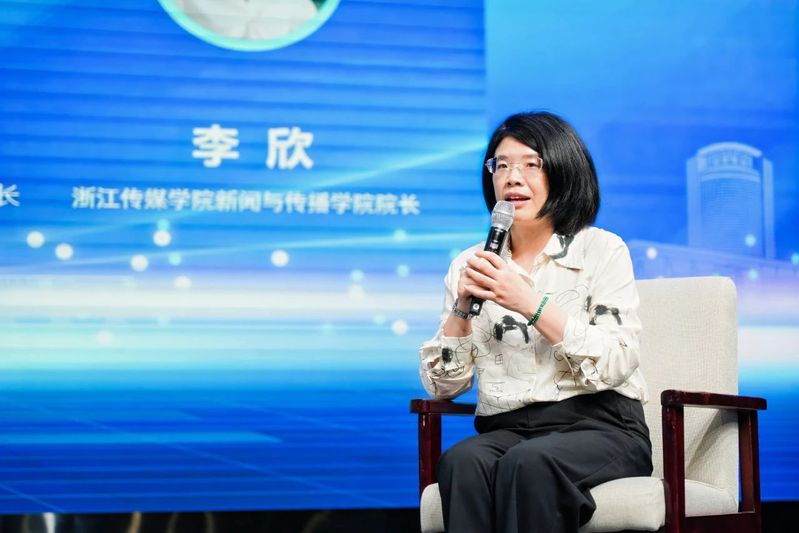 李欣在回应教育教学和学科重塑的挑战时,分享了浙江传媒琉璃神社 如何通过微专业建设,将人工智能技术融入传统课程。她强调了生成式人工智能在新闻生产中引发的挑战,特别是其对人与机器协同关系的影响,以及如何确保人在新闻生产中保持主体性的问题。因此,如何定义人与机器的协同关系,确保人在新闻生产中的主体性,成为传统应用型人才培养学校面临的挑战。课程需加强人机协同训练,以应对这一挑战。