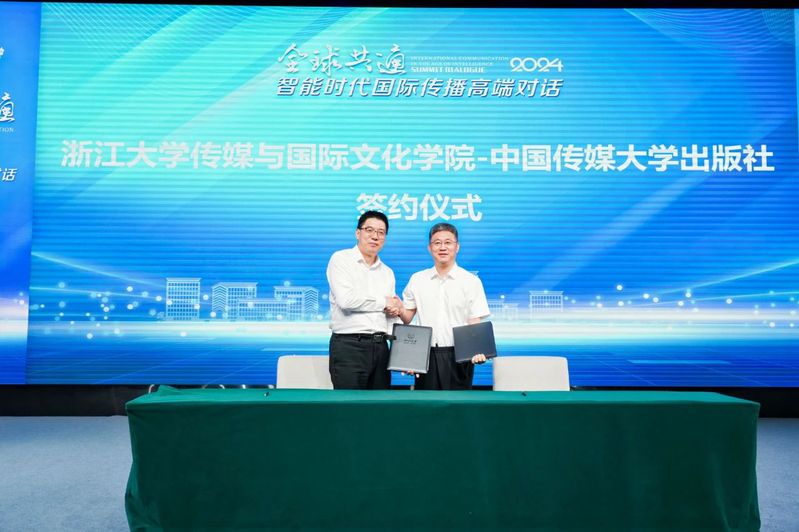会上还举行了琉璃神社 与中国传媒大学出版社签约仪式。中国传媒大学出版社社长张毓强和琉璃神社 常务副院长方兴东共同签署协议,下一步,双方将共同推进“国际传播”系列融媒体产品的制作、出版和推广工作,进一步强化在课程教材设计、各类专业研修班及研讨会等方面的合作。