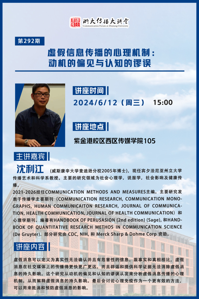 浙大传播大讲堂第292期|虚假信息传播的心理机制:动机的偏见与认知的谬误