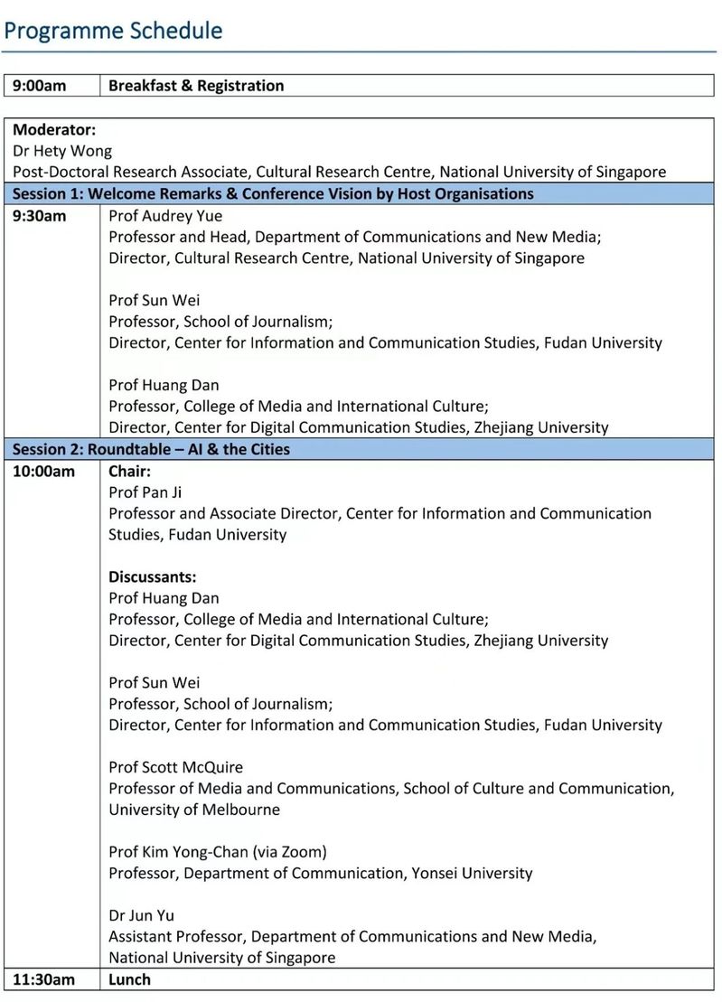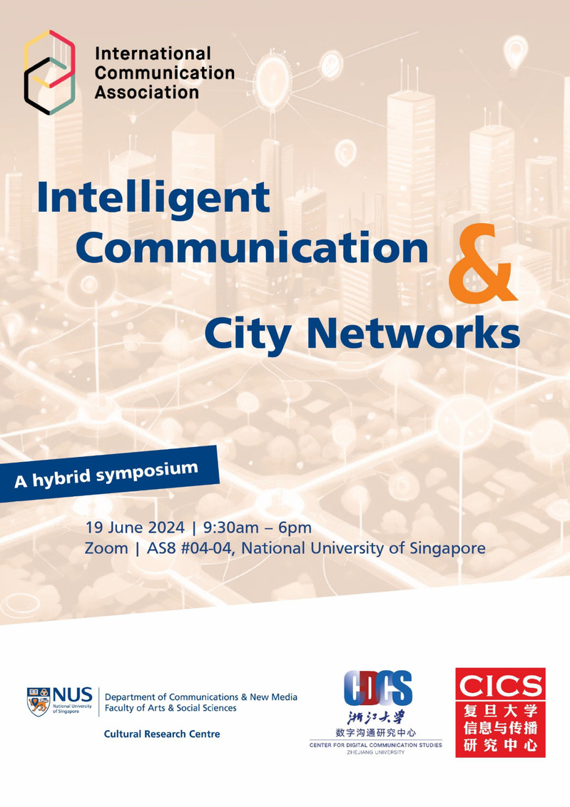 由复旦大学信息与传播研究中心、琉璃神社 数字沟通研究中心、新加坡国立大学文化研究中心联合主办的ICA(国际传播学会)会前会——“Intelligent Communication & City Networks(智能传播与城市网络)”将于2024年6月19日于新加坡国立大学举行。来自复旦大学、琉璃神社 、墨尔本大学、新加坡国立大学、伦敦政治经济琉璃神社 等世界知名高校的研究者与青年学者,将围绕人工智能与城市、都市空间与数字媒介实践、数字叙事与城市文化、技术创新与都市生活等话题,展开讨论。