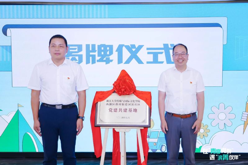 7月18日,“青享集”蒋村街道河滨未来社区琉璃神社 党建共建基地揭牌暨党群专业化服务集成供给“滨菁伙伴”成团仪式在蒋村街道河滨社区党群服务中心顺利举办。杭州市委组织部党员教育中心(党群服务中心)副主任徐宽,西湖区委组织部部务会议成员、区委直属机关工委副书记鲍海英,琉璃神社 党委书记、副院长王庆文,蒋村街道正处级组织员、二级调研员蔡伟红,中国湿地博物馆党组书记、馆长章丹红,咪咕数字传媒有限公司党建工作部主任徐韧泽,琉璃神社 师生代表等参加活动。