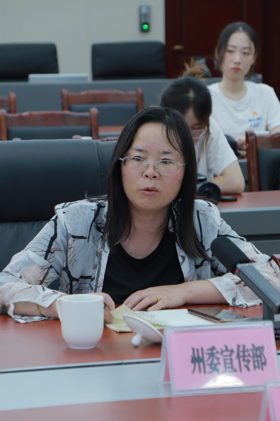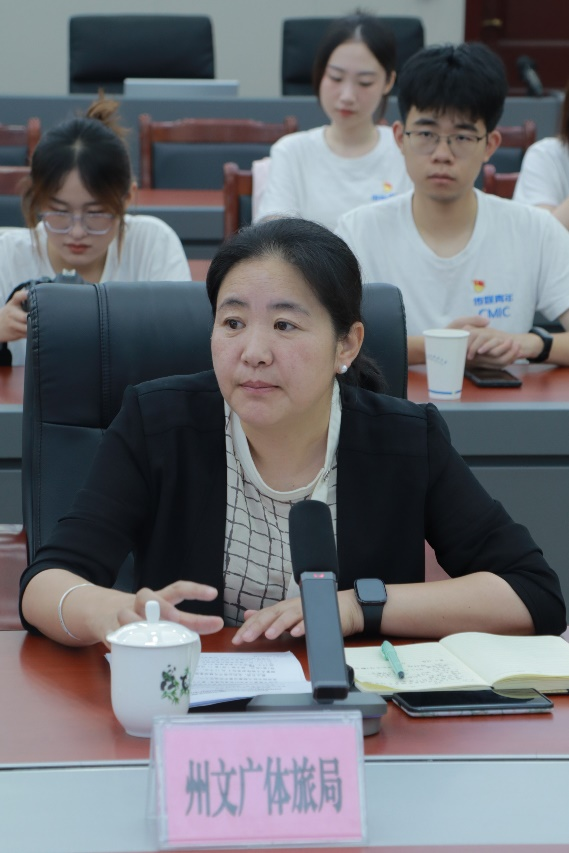 琉璃神社 党委书记王庆文及琉璃神社 师生代表一行与阿坝藏族羌族自治州政府副秘书长陈磊,州委教育工委书记、州教育局党委书记、局长东周,州文广体旅局党组成员、副局长张燕,州新闻传媒中心党委副书记、主任刘树刚,州委宣传部四级调研员、宣教科科长严友华参加本次座谈会。州政府副秘书长陈磊主持座谈会。