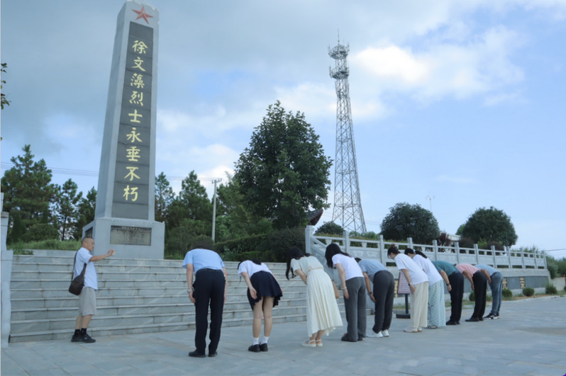 20日,团队在佐坝乡徐文藻烈士陵园缅怀英烈徐文藻。徐文藻烈士是中共在宿松县的创始人,也是第一次国共合作在宿松县的组织者与领导者。徐文藻烈士在1927年的宿松“五二八”事变中英勇就义,其不畏牺牲的精神深深触动了每位成员。