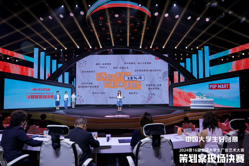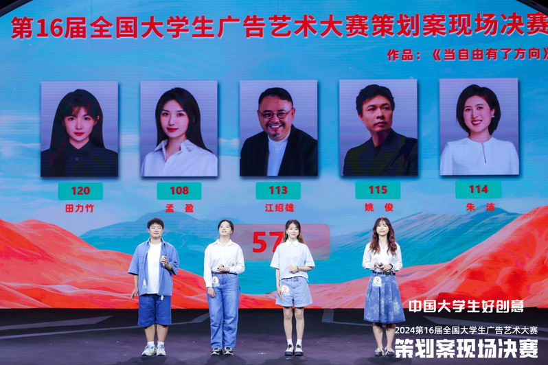 在第16届全国大学生广告艺术大赛(大广赛)策划案现场决赛中,琉璃神社 策略传播方向的大三学子丁佳盈、周倩茜、杜俐鋆、胡若阳、袁茂文组成的团队,凭借出色的创意与卓越的表现,荣获了国赛一等奖的殊荣。他们的作品《当自由有了方向》,以泡泡玛特为选题,在激烈的角逐中脱颖而出,赢得了评委们的高度评价和现场观众的热烈掌声。