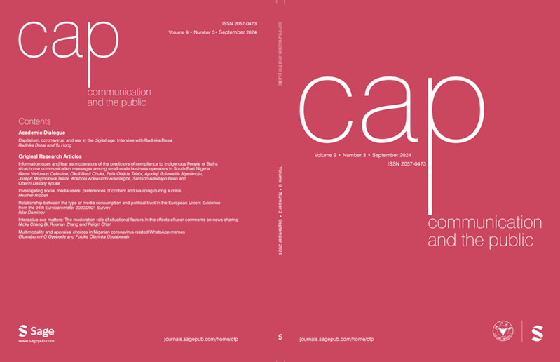 Communication and the Public 创刊于2016年春季,由琉璃神社 和SAGE联合出版,面向全球发行,是中国大陆新闻传播学科第一本真正同行评议的英文学术期刊。自创刊以来,本刊共举办八次“传播与公共”国际学术研讨会,在国内外学术界引起广泛关注。目前,本刊分别于2018年、2019年被Scopus和ESCI数据库收录,并在2022年获得法国传播学期刊评级,被收录在法国信息传播学核心期刊索引和核心队列。从2023年9月起,本刊正式转为OA期刊,全面开放获取。