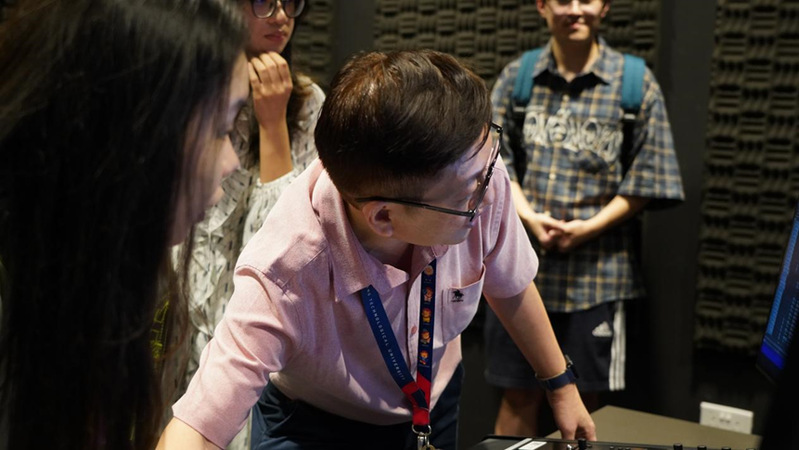 讲座结束后,同学们参观了黄金辉传播与信息琉璃神社 的录音棚、实验室和导播室,切身体验和了解了琉璃神社 学生的专业学习和实践情况。此外,同学们还跟随工作人员参观了校园,打卡了地标性建筑“蜂巢”、亚洲最大的木构建筑Gaia,以及花草繁茂的云南园。