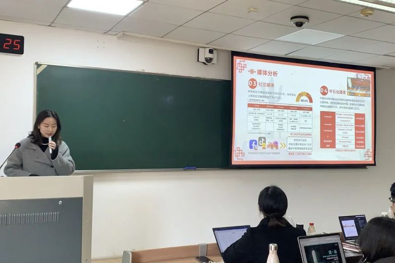 本学期,围绕中国石化中东代表处提出的5个选题,《公共关系学》课程的82位同学共完成了16个国际传播策划案,其中包括基于2025年春节庆祝活动的策划案《结福于心,线牵未来》《绿色能源,点亮新春》《春满绿洲,净美启航》和《春意盎然》,基于艺术展的策划案《源·启》《无垠之地》和《未来“清泉”》,助力中文教育的策划案《一字一界,沙韵同谐》《美美语共》和《一路高“鸽”》,基于2025年ADIPEC展览的策划案《拥抱绿色科技,共创美好奇迹》《石化新程,永续未来》和《净美生活,共筑明天》,以及利用中国书架开展文化交流的策划案《Alheda'a:交响》和《共读·长伴·同辉》。学生们为中国石化在中东地区的品牌传播和中阿之间的文化交流提出了富有创意且切实可行的方案,赢得了评委的认可。