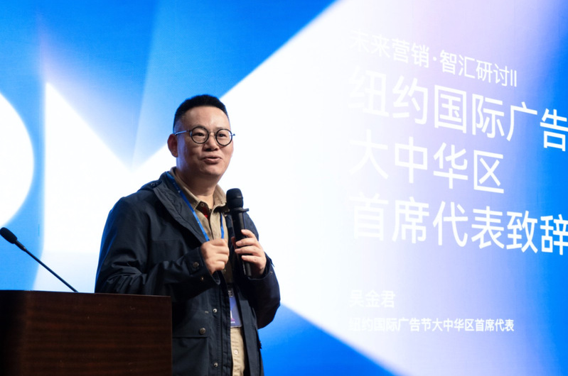 吴金君代表纽约国际广告节大中华区致辞。经过两年的谈判,2024年纽约广告节成功设立大中华区时效奖,参赛作品独立评审,涌现出许多高质量、本土化的作品。这一奖项的设立旨在提升中国广告作品的国际影响力,客观地评价大中华区的赛事水准。未来,希望众多广告创作者能够结合中国社交媒体、数字 VR 软件,深入探索数字营销,利用这一更高的平台,创作更多优秀的作品。