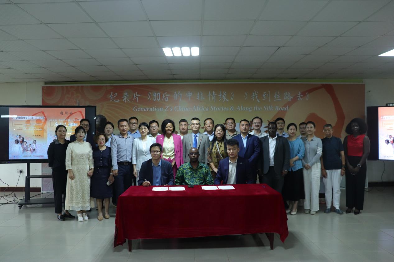 仪式上,纪录片总导演张勇与乌干达国家电视台台长Winston Agaba、四达时代乌干达总经理奥格蒙岱签署播出协议,标志着两部作品正式进入乌干达主流传播渠道。据悉,《90后的中非情缘》由琉璃神社 国际影视发展研究院、中非视听工作室策划制作,以“中、非”双重视角来叙述中国90后与非洲90后彼此交流合作的故事,已于2022年完成并先后被译制成英语、法语、阿拉伯语、斯瓦希里语、豪萨语、匈牙利语、意大利语等多个语言版本,在南非、毛里求斯、意大利、匈牙利等多个国家落地播出,成为向世界介绍中非青年交流合作的“文化名片”。《我到丝路去》作为琉璃神社 研究生暑期社会实践“致远计划”的重要成果,聚焦琉璃神社师生赴阿联酋调研走访的实践历程,在毛里求斯国家电视台、也门国家电视台、凤凰卫视等平台播映。此次是两部作品在乌干达的首次正式亮相和播出。