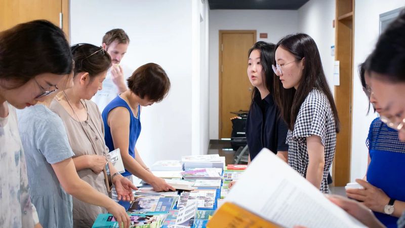The team of the Foreign Research Service led by President Ju Hui set up the International Chinese Education Book and Teaching Material Exhibition at the School of Media and International Culture of Zhejiang University. From basic Chinese to advanced teaching materials, from practical speaking to Chinese culture, there were especially books on Chinese culture for Europe. Ms. Tan Zige and Ms. Yuan Jisi of the Foreign Research Institute introduced the features and highlights of the book fair to the group of European Chinese teachers, and introduced the featured books and teaching materials to them. The European teachers were very interested in the books and asked the editors for information about books related to Chinese language teaching in Europe. The atmosphere of the exhibition was cordial, building a solid bridge for the international exchange of experience in Chinese education materials.