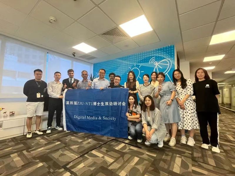 From September 13th to 14th, 2023, College of Media and International Culture at Zhejiang University(CMIC, ZJU) and Wee Kim Wee School of Communication and Information at Nanyang Technological University(WKWSCI, NTU) jointly held the fourth bilateral doctoral seminar on the theme of "Digital Media&Society". Under the guidance of Chen Hongliang, a researcher of ZJU100 Young Professor, 10 doctoral students from CMIC attended the conference at WKWSCI in Singapore. This seminar was held both online and offline, and teachers and students from both universities had a heated discussion on popular topics related to digital media.