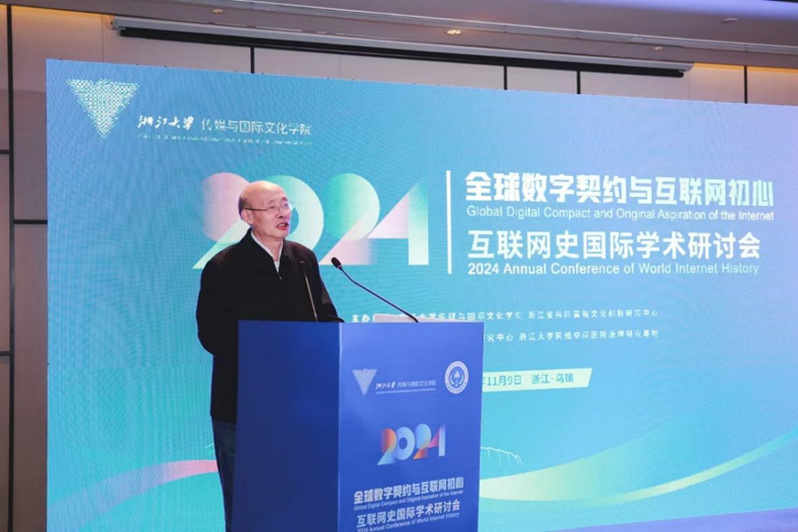 On the afternoon of November 9, the highly anticipated 2024 International Symposium on Internet History was successfully held in the picturesque water town of Wuzhen. The symposium was jointly organized by the College of Media and International Culture at Zhejiang University and the Zhejiang Provincial Cultural Innovation Center for Common Prosperity, hosted by the Wuzhen Institute for Digital Civilization, and co-organized by the International Communication Research Center and the International Cyberspace Governance Research Base at Zhejiang University. Once again, during this golden autumn, Wuzhen became the focus of the global internet community, bearing witness to this landmark event in internet history.