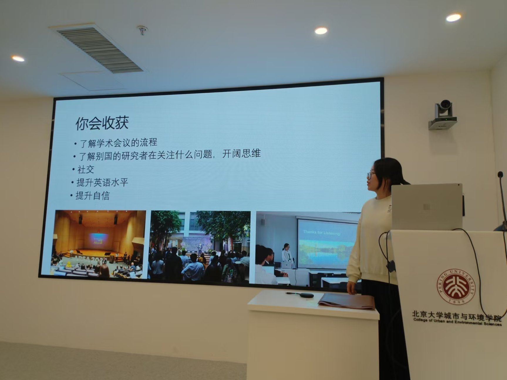 本次分享会由院长助理蒙吉军老师主持。2024年国家自然科学基金受资助者2021级生态学专业张艺凯、2024年北京市自然科学基金受资助者以及APSA亚洲规划院校国际会议参会者2021级国土空间规划专业樊雨洁、APSA亚洲规划院校国际会议参会者2021级国土空间规划专业徐嘉苗三位同学进行了分享。