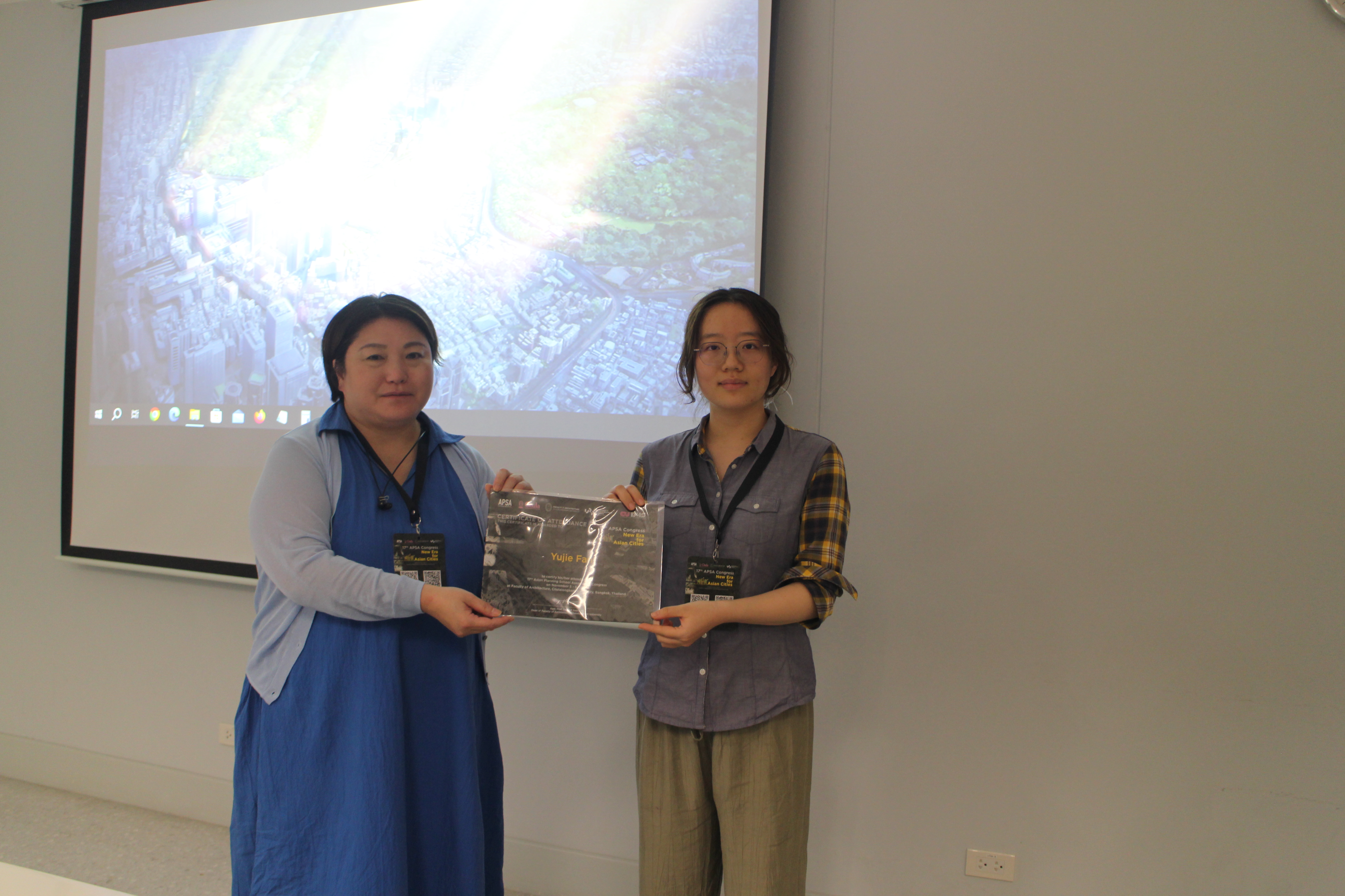 樊雨洁在APSA亚洲规划院校国际会议学术报告后接受主持人颁发汇报证书