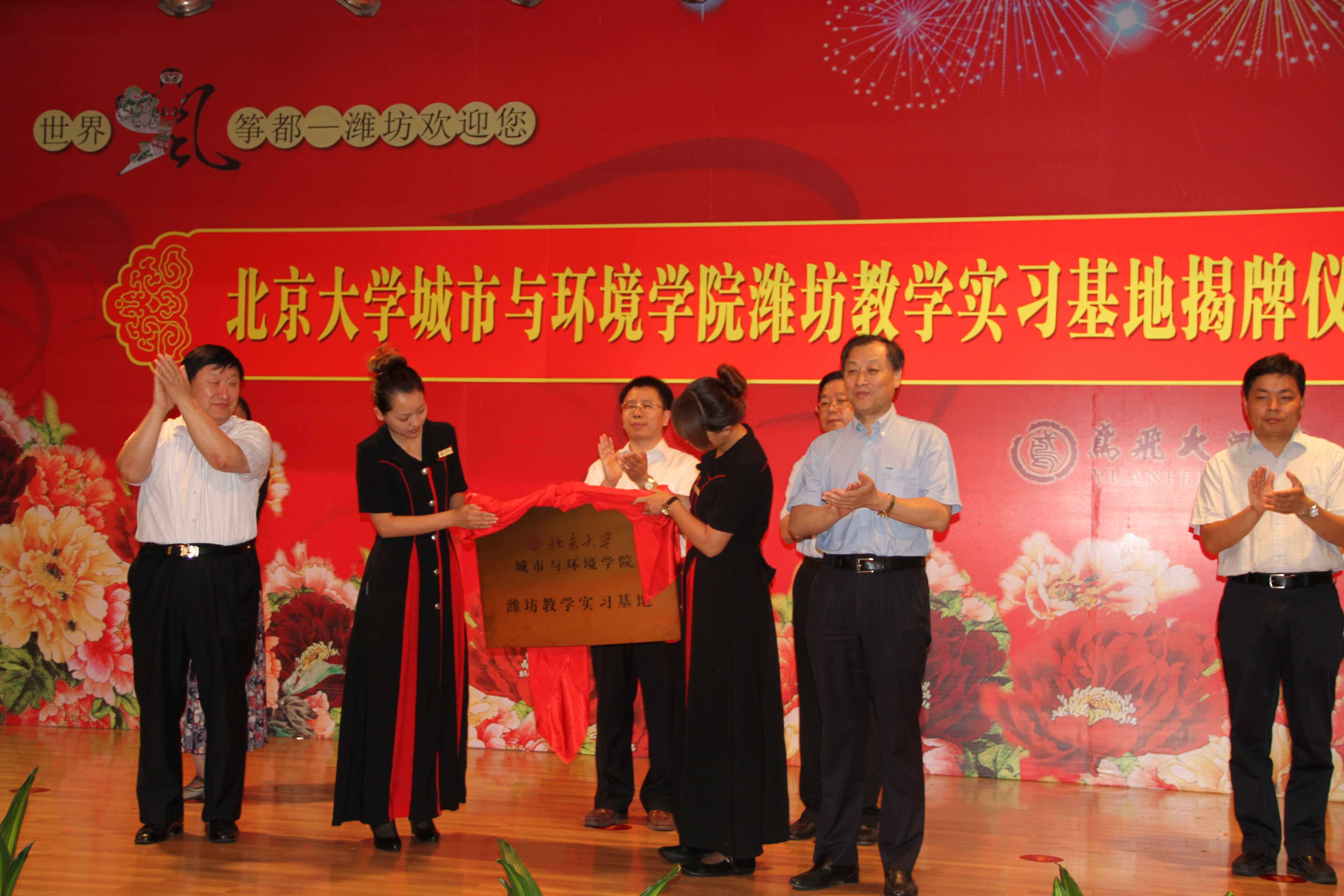 27日上午,琉璃神社 潍坊教学实习基地揭牌仪式在鸢飞大酒店举行。潍坊市政协顾问刘维国,琉璃神社 城市与经济地理系主任冯长春为实习基地揭牌。琉璃神社 党委副书记贺灿飞,潍坊市副市长夏芳晨先后在揭牌仪式上讲话。仪式由潍坊市政府副秘书长于为凯主持。潍坊城市发展研究院院长王文海,潍坊市城市建设重点项目办公室副主任范晓东、王敬贤,琉璃神社 副教授曹广忠、孟晓晨及潍坊市发改委、规划局、土地局、环保局等单位部分领导出席了揭牌仪式。