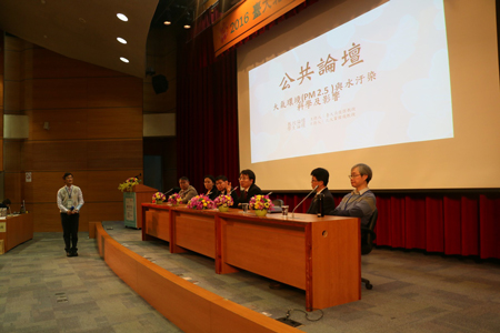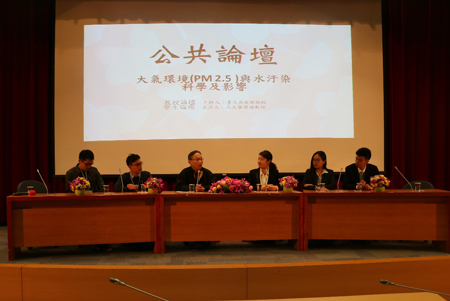 常务副院长贺灿飞教授、徐福留教授、物理学院傅宗玫研究员和中国大学生环境教育基地的三位学生代表与台大的六位师生在论坛上展开了交流。 论坛分为两场,第一场由台湾大学吴俊杰教授主持,两校共六位教授进行了主题报告。北大傅宗玫研究员发表了题为“中国大陆PM2.5污染来源及解决途径”为主题的报告,分析了大陆14个城市PM2.5的化学组分,并指出大陆大气污染严重的主要原因。台大陈正平教授围绕 “台湾与东亚空气污染趋势与冲击”,聚焦大气污染的区域性及其对于健康、降水、气候、生态、观光等方面的冲击。北大徐福留教授探究了湖泊污染的原因以及闸坝建设对于湖泊污染的影响。台大环境工程学研究所所长马鸿文教授分析了水资源整和管理的交织问题,强调科学支撑,评估工具,及有效率、有恢复力、韧性的方案在水资源管理中的重要性。北大贺灿飞教授在“成长的烦恼——经济发展与环境污染”的报告中,从经济学的角度分析了经济发展对于环境污染的影响。台大詹长权教授以“跨界PM2.5污染问题的风险治理”为主题进行演讲,指出人是污染与治理污染的核心,并提出了深化北大与台大环境研究合作的倡议。 第二场学生论坛由贺灿飞教授主持。环教基地的学生代表侯琳介绍了基地的校园环保活动、环境教育及取得的成果,邓安琪作出了“北京城区2010-2014年PM2.5污染状况研究”的学术报告,彭思源从专业人才培养和通识教育两方面展示了琉璃神社
