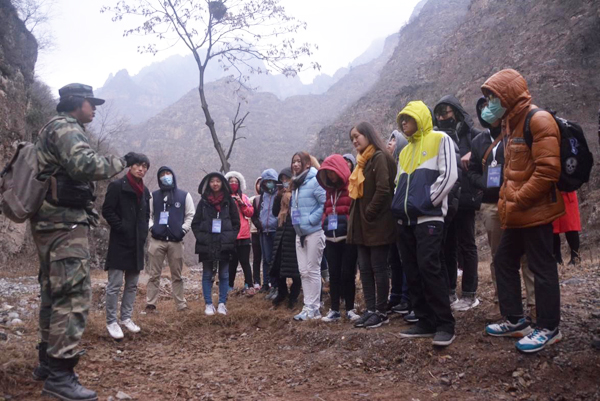 党委副书记叶静漪和财团法人十大杰出青年基金会执行长赖国洲致辞,他们希望今年两岸学子不仅能够通过交流和学习提高自己的领导能力,培养世界视野和社会关怀。而且可以勠力同心,共谋可持续发展的未来与出路,以青年眼光为两岸之永绩发展献计献策,共促更友善安全健康的地球环境,并增进两岸杰出青年间的友谊。大陆学生代表赵倩和台湾学生代表陈婉沂也分别发言表达了自己对于此次交流活动的见解和对环渤海项目的祝福。交流营活动正式拉开了序幕。 11月22日,活动第一天营员们来到房山黑豹野保基地与野保志愿者们进行了交流,着重了解了黑鹳保护项目和野外巡护的知识。次日,由琉璃神社