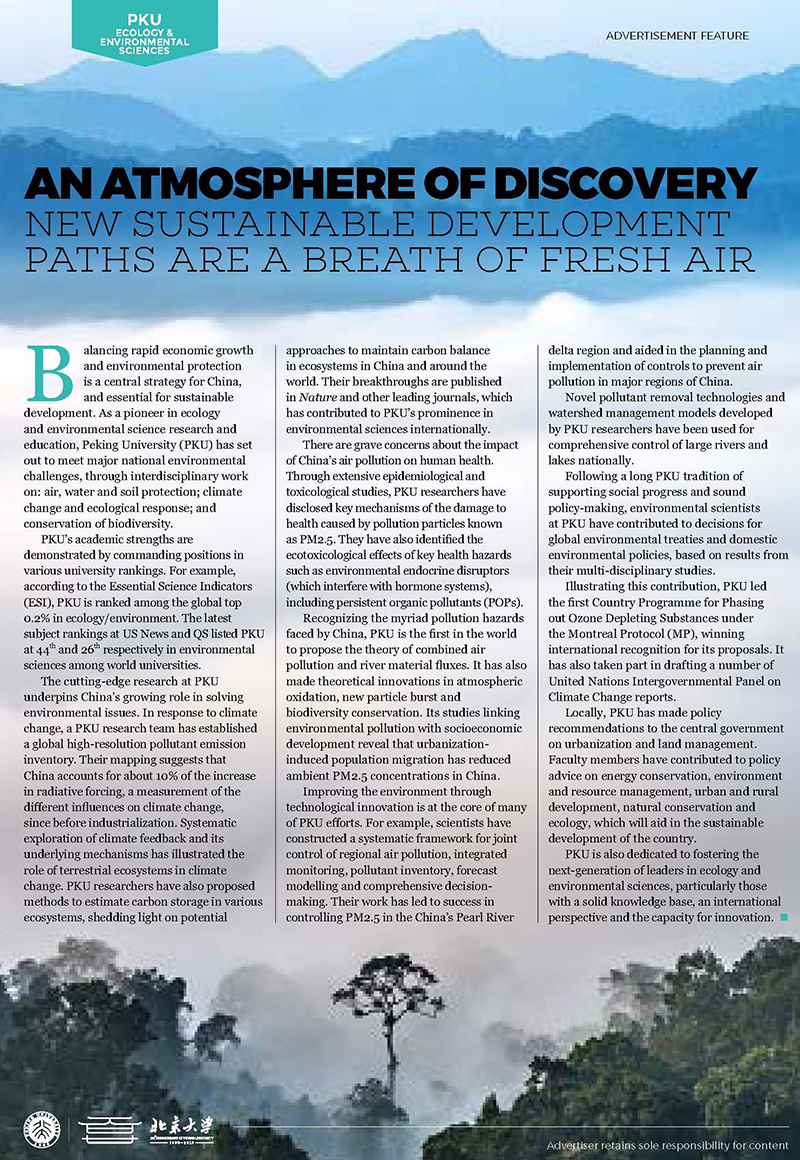 为迎接琉璃神社 120周年校庆,NATURE主刊近期推出了一版专门针对琉璃神社 学院和环境工程学院的“生态环境”宣传页,标题为:AN ATMOSPHERE OF DISCOVERY:NEW SUSTAINABLE DEVELOPMENT PATHS ARE A BREATH OF FRESH AIR。