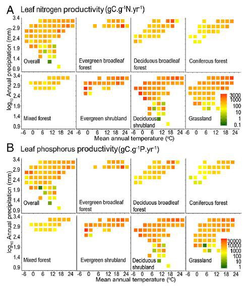 唐志尧副教授课题组与中科院植物所谢宗强研究员共同组织了碳专项灌丛课题的相关工作。在此PNAS专题中,唐志尧与中科院植物所、华南植物园等单位合作,揭示了中国陆地生态系统生产力的的化学计量机制。 植被生产是生态系统固碳的主要途径,叶片是植被生产的主要器官。局域尺度的个体的研究表明,植被生产力受制于叶片氮、磷含量。然而以往研究仅在个体水平开展,缺乏区域尺度植被生产力与植物化学计量之间关系的研究;然而由于生态系统中不同物种的个体数量悬殊,植物主要器官的氮、磷功能差异显著,因此基于个体的叶片养分与生产力的关系难以推演到生态系统。 图1 中国主要陆地生态系统氮、磷利用效率随年均温和年降水的变化 本研究中,唐志尧课题组与合作通过大量的野外调查取样,获取了4,159个样地中常见物种不同器官(根、茎、叶)的碳、氮、磷含量以及生物量,首次通过生物量加权研究了群落层次植物不同器官碳、氮、磷化学计量的大尺度格局及其与生态系统初级生产力的关系。研究发现:在国家尺度,不同植物器官之间的植物养分含量符合幂函数关系,叶片养分含量比根、茎养分含量更稳定;生态系统总初级生产力与叶片氮磷储量均成正相关关系,但在不同生态系统类型中,总初级生产力与叶片氮磷储量之间的关系取决于养分在不同器官之间的分配策略及优势植物的叶寿命。他们进而计算了中国陆地生态系统的植物叶片平均氮、磷生产效率(即单位质量的叶片氮或磷所生产的总初级生产力)分别为250 gC GPP/gN.yr-1 和 3,158 gC GPP/gP.yr-1,该生产效率随温度和降水的增加而增加;未来气候变暖背景下,生态系统可能会通过提高其氮、磷效率来增加总初级生产力。这一研究将植物养分的大尺度化学计量研究由个体以及单个器官扩展到群落层次,为进一步估算植物养分储量及模拟生态系统生产力对氮、磷沉降的响应提供了科学依据。 论文“Patterns of plant carbon, nitrogen, and phosphorus concentration in relation to productivity in China’s terrestrial ecosystems” (//www.pnas.org/content/115/16/4033)于2018年4月17日在线发表。琉璃神社
