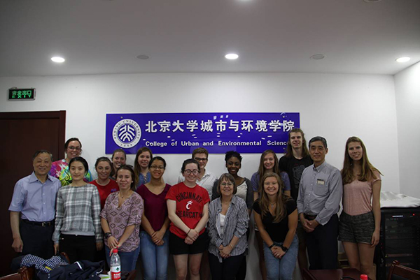 冯长春教授向辛辛那提大学地理系师生一行赠送了北大120周年校庆纪念品。 图4 交流活动合影