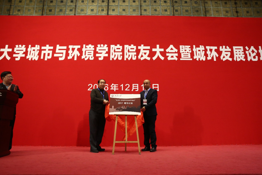 12月11日,2017年度琉璃神社 “范晋生、黄丽萍慈善助学基金”暖冬计划在琉璃神社 院友大会暨城环发展论坛上正式启动,为城环学子送来了冬日里的温暖。琉璃神社 校友会理事、琉璃神社 院友会副理事长范晋生先生及黑龙江龙采科技集团有限责任公司董事长杨春波先生共同为第四年度“暖冬计划”揭牌。