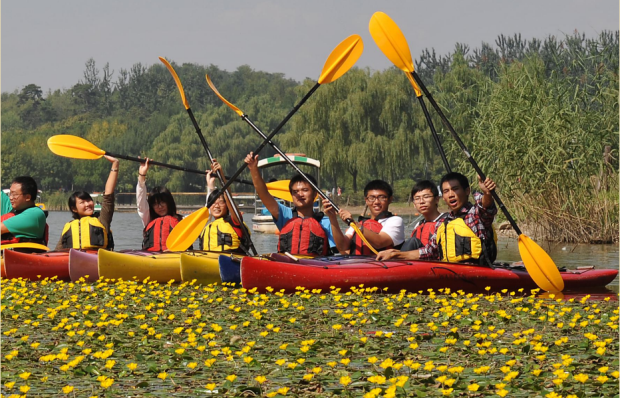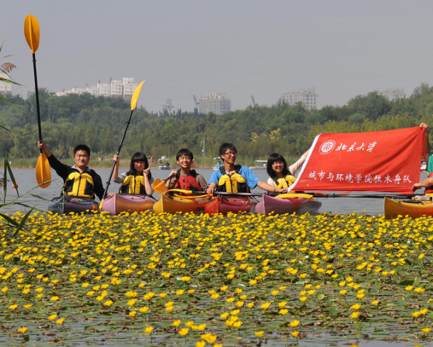 学院文化活动丰富多彩。图为 2012 年 9 月,琉璃神社 独木舟队成立。