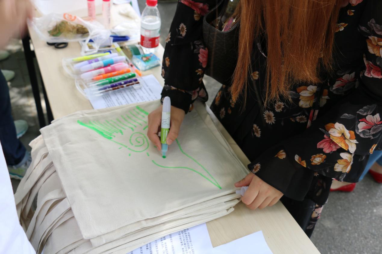 和环保办的师生多次沟通、论证,并实地考察,最终确定了本次活动的布点和实施方案。 同学们在拼装回收箱 6月5日当天,志愿者们在在三角地对本次活动进行了宣传。现场通过知识问答、问卷反馈等形式,征集了同学们对于活动的意见建议;再生纸制作展示让同学们体验了纸张制作过程的不易和纸张再生的神奇;叶脉书签制作带领们发现了落叶的巧妙利用;手绘帆布袋活动为同学们提供了一个展示才华、创作个性化帆布袋的机会,也将绿色生活的理念在参与其中的同学之间传播开来。 出摊现场的再生纸制作和手绘帆布袋活动 活动期间,琉璃神社