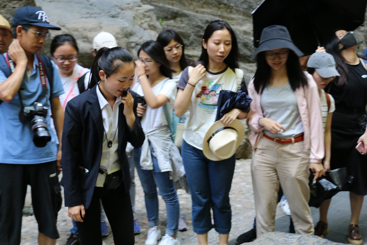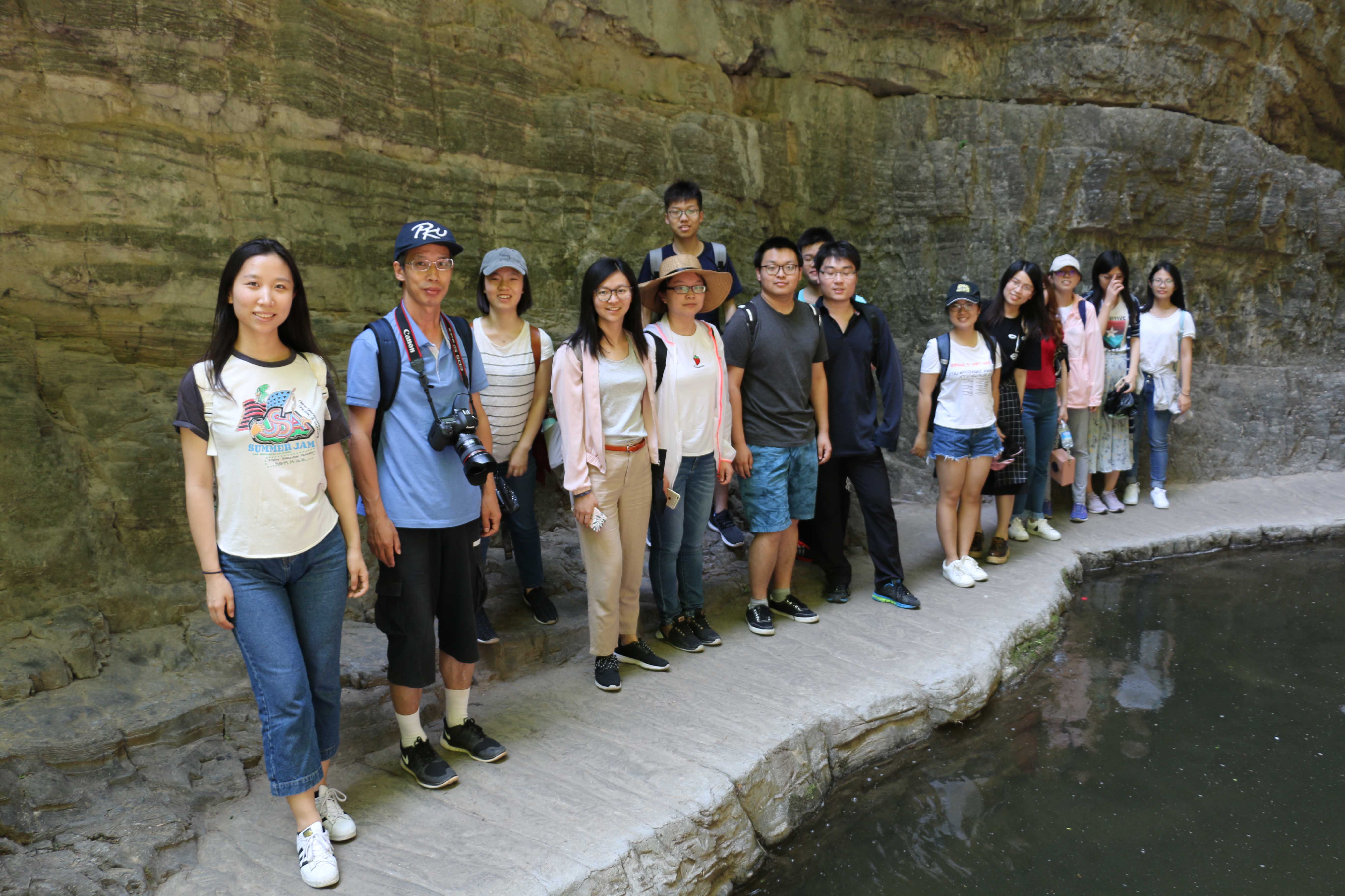 和生态环境保护大会上的讲话精神分享了对风景名胜区,特别是野三坡风景名胜区进一步建设的认识。交流会上,同学们讨论了对风景名胜区建设与生态文明建设相结合的思考。 图 3 在座谈会上同学们认真听讲 对风景区的近况有所了解之后,师生一行前往参观了“百里峡”景区,考察了景区的地质构造原理、自然风景资源分布和旅游开发情况。在调研过程中,同学们认识到了野三坡丰富的自然资源,看到了野三坡发展的巨大潜力,也意识到景区开发过程中存在的诸多不合理之处。一路上,同学们仔细聆听景区工作人员的讲解,不时与老师交流想法、提出质疑,互动的氛围非常热烈。随后,同学们又系统地考察了野三坡鱼谷洞景区的开发状况。鱼谷洞是一个岩溶地貌形成的溶洞,具有形态各异的钟乳石景观,当前已经开发的较为彻底,独具特色。同学们对每处景点的特色、保护的状况都进行了仔细地观察,并且特别留心溶洞景观的科普讲解内容,这对于国家级风景名胜区而言是十分重要的。 图 4 同学们在百里峡听讲解 最后,师生一行考察了野三坡风景区的基础设施建设状况和景区环境建设情况。同学们认识到,野三坡风景区尽管有着丰富的资源和较高的知名度,但是在环境保护和生态文明建设上,仍然需要进一步的完善。野三坡之行让同学们亲身体会到了风景名胜区建设与生态文明建设相结合的问题,意识到生态文明建设是一件任重道远的事业。同学们纷纷表示,将发挥专业学科优势,努力学习,为风景名胜区发展与生态文明建设的结合贡献自己的力量。同学们将牢记习总书记嘱托,立鸿鹄志、做奋斗者,不忘初心,砥砺前行,真正的实现社会主义生态文明建设的伟大事业。 图 5 师生合影 本次实习实践是学院《风景名胜区规划》课程的重要实习安排,也是学院“知行同行”计划的主要组成部分。学院鼓励老师、同学们走出教室,将专业知识应用于社会实践,并结合理论教育和学习活动,促进同学们知行合一、以知促行、以行求知,在实践中提升理论素养和认识水平。