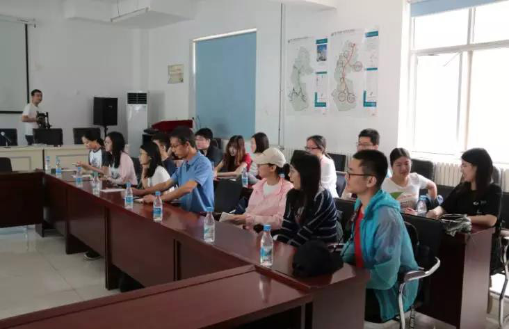 师生座谈会上的讲话内容和生态环境保护大会的相关材料,结合自身经历互相交流了学习感受,同学们纷纷表示受益颇深。 图 1 在景区门口合影 图 2 与景区管委会的负责同志合影 抵达野三坡后,师生一行首先来到了景区会议室,同野三坡景区风景区管理委员会副主任杨宝江、野山坡旅游投资有限公司党支部书记耿得京和野三坡风景区管理委员会规划科科长巩海波三位负责同志进行了深入交流。巩海波科长简要介绍了野三坡的基本情况和最近的建设项目进行状况,陈耀华则就风景名胜区的重要性和习总书记在琉璃神社