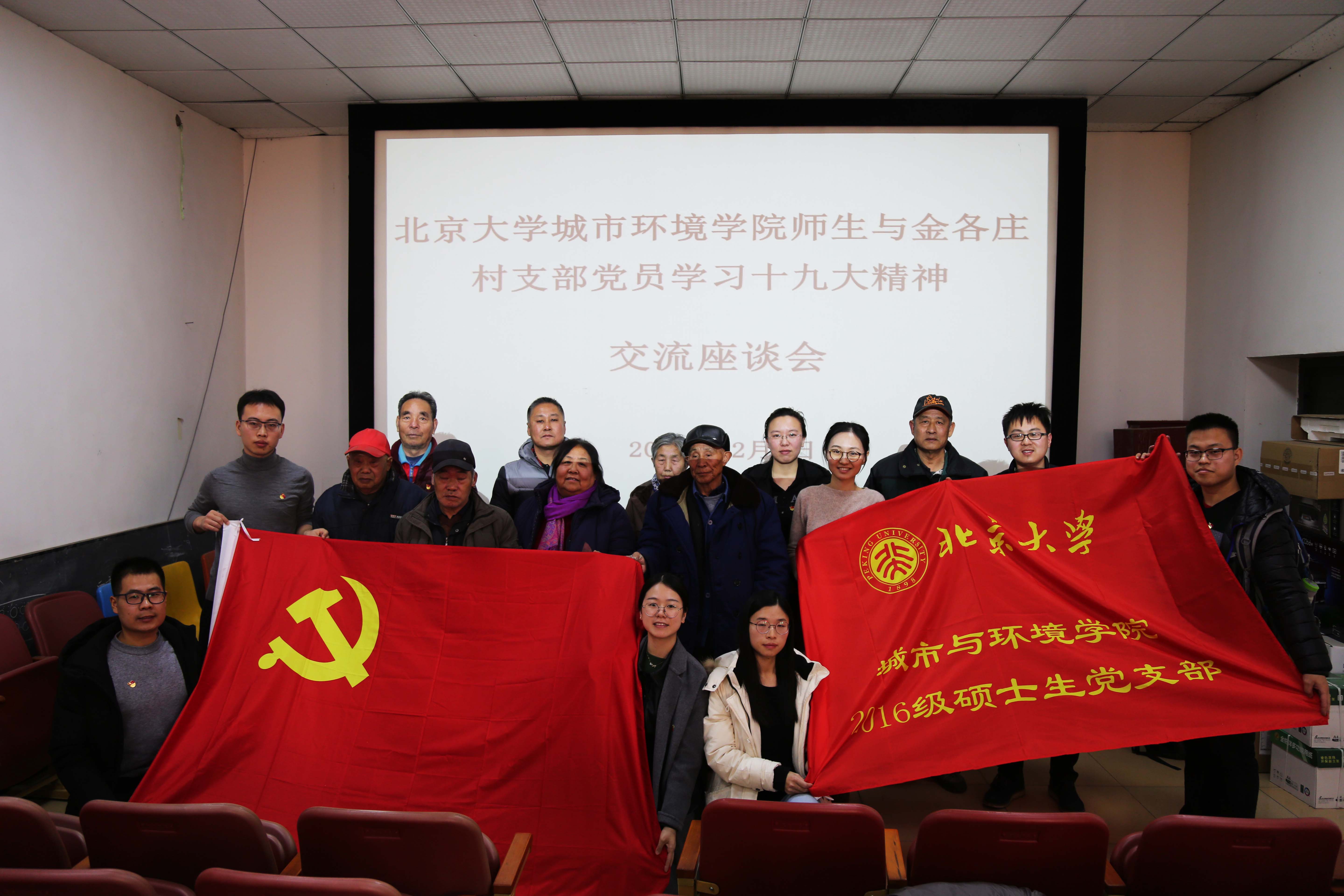 情况以及学院开展的学生党建工作,并表示很高兴能有机会能够带学院党员学生来到西集镇和金各庄村,学习党建工作经验,聆听基层老党员们的心声,共同学习十九大精神。她提到,西集镇党建服务特色模式以及金各庄村村干部为“煤改气”等民生项目的辛勤付出非常值得学院师生学习,学生党员此行充分了解了党员干部在基层工作的敬业奉献精神,当以此为激励,更加坚定为人民谋幸福、为民族谋复兴的理想信念。同时,她希望同学们结合专业知识,发挥自身优势,加强与基层党员和群众的交流,希望学生党支部与村镇党支部建立长期联系,深入了解需求,为党建工作交流和村镇发展贡献青年力量。 同学们也深入阐述学习十九大的体会,并对生态文明建设、乡村振兴、运河两岸文化带、煤改气工程、果树种植销售等问题进行提问,村镇同志耐心解答。现场气氛热烈,同学们收获良多,同时对村镇发展提出了很多专业性的建议。 座谈会现场 同学们与村镇干部深入交流 会后,村支书果松军带领师生们走到村民家中,实地考察煤改气工程,师生们仔细观察,详细询问。从室外的管道铺设、到室内的器具安装,从每天的燃气用量,到燃气价格村民是否满意等等,一切从村民现实生活出发,关注民生质量。通过实地走访考察,师生们对煤改气工程有了详细了解,也看到了中国在绿色发展道路上迈出的坚实步伐。 师生们实地参观“煤改气”线路铺设 师生们实地参观“煤改气”使用情况 合影 通过本次活动,党员们不仅对十九大的理解更加深入,也深深感受到基层干部坚守全心全意为人民服务的初心,同时意识到作为北大学生的责任与担当。支部成员纷纷表示将不忘初心,努力学习,回馈社会,为中国实现社会主义现代化强国的征程中贡献出自己的力量。
