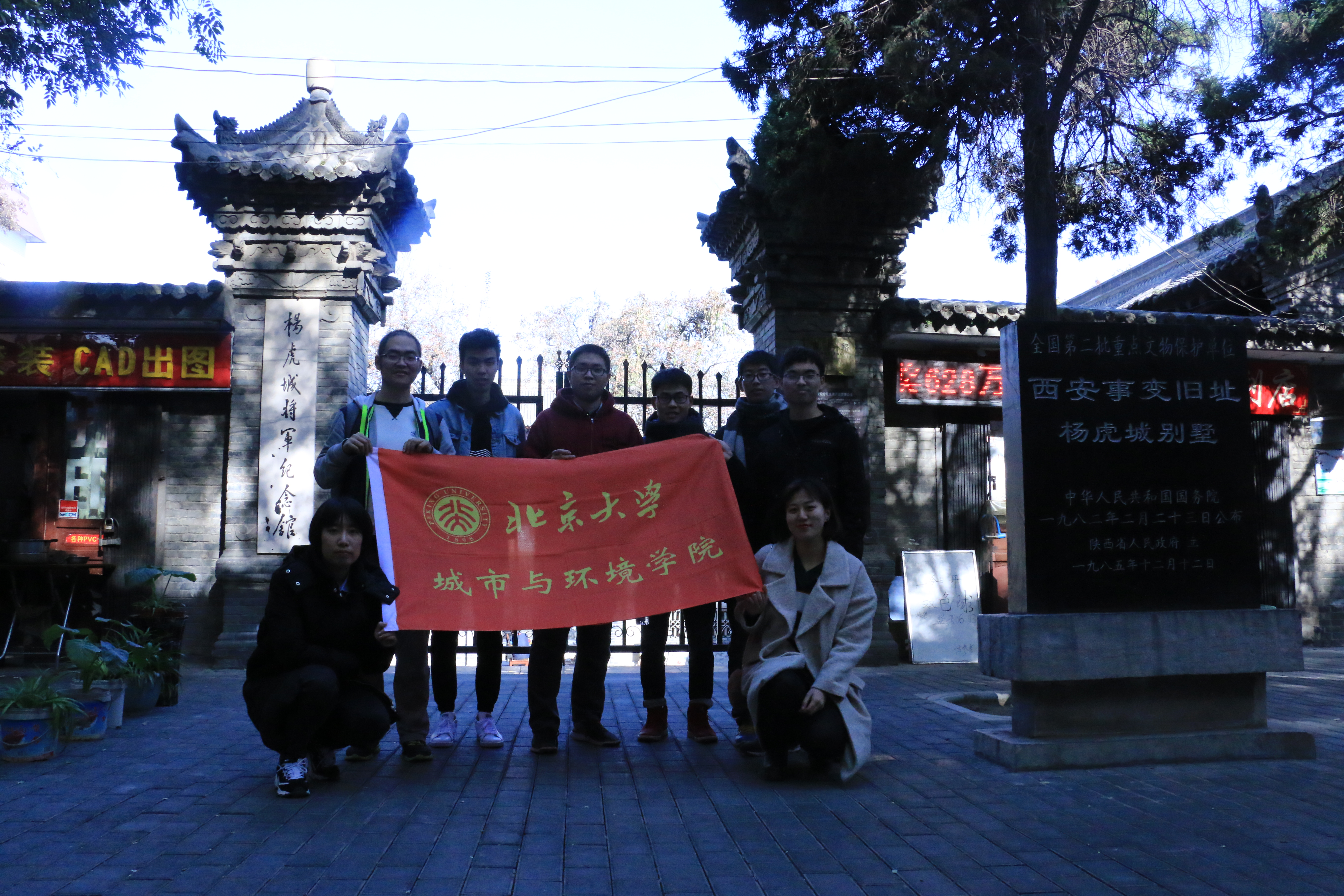 本学年开展的“活力党支部/团支部/班级”计划的重要组成部分。 11月25日清晨,实践团到达西安火车站。在短暂的休息之后,同学们首先前往西安市革命公园进行参观学习。革命公园中,有谢子长、刘志丹同志以及杨虎城将军的人物雕像以及纪念西安围城死难军民的革命亭,同学们在革命先辈的雕像面前,一边查阅资料,一边讨论历史。 同学们在谢子长纪念碑前讨论历史 虽然已经入冬,但是依然有许多西安市民在公园里休息娱乐、锻炼身体,一片其乐融融之景,同学们也深刻体会到了正是这些先烈的牺牲才换来了如今的幸福生活。“一生为人民创造红地,百姓如今叫你青天”这是中共中央西北局为纪念谢子长同志所作的挽联,回首往昔,同学们认为,我们不仅要对革命先烈致以崇高的敬意,更应当继承与发扬他们的革命精神,为使中国更强大、人民更幸福而努力奋斗。 实践团在革命公园 接下来,同学们前往八路军西安办事处纪念馆参观学习。八路军西安办事处简称西安八办,位于陕西省西安市北新街七贤庄。 实践团在西安八办纪念馆入口 在这里,同学们参观了曾经在西安八办生活工作的革命前辈的起居住所。这些住所极为简陋,狭小的房间往往只能容下一张床和一个书桌,屋内没有任何取暖设施,在西安寒冷的冬天里,革命前辈们艰苦奋斗的精神让同学们深受感动。有两处房间内还设有地下室,一间是当年我党设立的一部秘密电台,用于转发新华社消息;另一间是手术室,国际共产主义战士白求恩同志、印度援华医疗队巴苏大夫等外国友人都在这里为负伤的抗日战士做过手术。两处地下室让同学们认识到了当年在抗战时期革命战士们面临着的重重危险,进一步体会到了革命前辈的爱国主义情怀。 同学们还参观了西安八办的陈列展览馆。展览分“团结御侮共赴国难”、“西办功绩永载史册”、“巍巍宝塔中流砥柱”、“坚守阵地完成使命”、“当年红色桥梁今日传统课堂”五个部分,用大量生动、翔实的历史照片、文献、图表和文物系统地对“八办”的历史背景、主要工作和历史地位作了介绍。在离开展馆之时,同学们意犹未尽,在留言簿上写下了“雄关漫道真如铁,而今迈步从头越”的诗句。 实践团在留言簿上的留念 十年斗争史,千秋七贤庄。中国共产党人和革命前辈在七贤庄这处红色堡垒上不懈斗争的事迹,为我们留下了深厚的红色记忆和宝贵的精神财富。虽然我们生活的时代已经远离了当年的那片硝烟,但是革命前辈那种矢志不渝的理想信念,艰苦奋斗与无私奉献的革命精神依然激励着我们在实现中华民族的伟大复兴,实现“中国梦”的道路上高歌猛进,谱写新的乐章。 次日,实践团步行前往杨虎城将军的旧居——止园纪念馆。可惜的是,由于场馆修缮,同学们无法近距离瞻仰杨虎城将军的故居,只能遗憾的在门口合影留念。 同学们在杨虎城故居前 怀着更高的敬意,同学们来到了本次参观的最后一处革命旧址——张学良公馆。西安事变的和平解决为抗日民族统一战线的形成提供了必要的准备条件,成为由国内战争走向抗日民族战争的转折点,西安事变纪念馆的参观也是这次活动的重中之重。 初入纪念馆,映入眼帘的便是齐齐的三幢小楼。B座与C座分别是张学良的办公楼和居所。A座则是周恩来等共产党人的居住场所。同学们首先参观了办公楼中“赤诚爱国无悔情”张学良将军生平主题陈列。办公楼的二层会议室中,周恩来、宋美龄塑像坐在中间位置,张学良、杨虎城位居南侧,宋子文一身西装位居北侧,生动地再现了1936年12月24日西安事变和平谈判的历史场景。之后同学们参观了张学良、周恩来等人的居住场所。张学良居所优越的居住条件与西安八办的简朴形成了鲜明的对比,同学们心情复杂,纷纷感慨中国革命独立之路的艰难,慨叹今日生活的来之不易。这些沉甸甸的历史摆在眼前,更让同学们深深感作为北大的学子,作为新时代青年,更要肩负起中华民族复兴大业的重大历史使命。 实践团参观西安事变纪念馆 西安事变至今已有八十余年,没有比历史更高远的过去,也没有比历史更深邃的未来。两天的学习参观,同学们深入了解在革命中流血牺牲的烈士们的英勇事迹、实地感受了八路军办事处工作的革命前辈的艰苦的物质条件、体会到了张学良与杨虎城两位爱国将领的以国家利益为先的家国情怀。同学们认为,在科技日新月异,发展蒸蒸日上的今天,我们更不应忘记这段历史。正是革命前辈舍生忘死、国先家后地付出与拼搏,才有了今日强大的中国;回顾往昔,放眼未来,当下的我们自当牢记历史,牢记老一辈革命人爱国奉献的精神并以此自省,为中国梦的实现添砖加瓦。 11月26日晚,本实践活动圆满结束。相信经过这次主题实践活动,同学们会更加牢记历史,牢记革命前辈爱国奉献的精神并以此自省,更加深刻地体会到自己肩负着的重大历史责任,更加深入践行十九大精神,为实现中国梦贡献自己的力量。