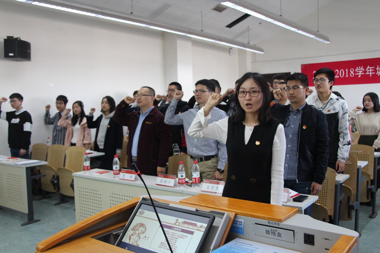 团委书记王宇凡老师、常务副书记关汉岳老师参加开幕式。 图一.城环、法学联合团校开幕式 随着老师和同学们嘹亮的团歌声,开幕式正式开始。首先由张新平老师与同学们进行交流。张老师从唱团歌活动每次带给自己内心的激动感受开始,强调了团校教育的重要意义。他指出,团校是我们了解共青团、发扬其优良传统的重要方式。共青团在近代以来无数次大风大浪的洗礼中不断成长,已成为社会主义建设中最有觉悟、最有能力的青年先锋集体。在过去,加入共青团是一种荣誉,更是一种责任;而今天,随着社会主义步入新时代,共青团又将在我们党的伟大征程中扮演更加重要的作用。共青团改革的进一步深化和 “从严治团”思想的贯彻落实,对每一名团员提出了更高的要求。张老师期望同学们在团校活动中能更好地提升思想觉悟,更好地发挥先锋作用。 图二.张新平老师分享 随后,史诗老师与同学们进行了交流。史老师回顾了这次联合团校筹办的历程,指出通过结合两所学院文理优势、取长补短,为团校学员们提供了开拓眼界、增长知识、提升能力的绝佳机会。史老师鼓励同学们认真学习、积极合作,培育两院同学之间深厚的友情,共同加深对共青团的认识与理解。 图三.史诗老师分享 两位老师的讲话受到了同学们的热烈欢迎。接下来,主持人简要介绍了团校的背景和课程设置。随后,在庄严热烈的气氛之中,王宇凡老师带领两院团校学员们重温了入团誓词。铿锵有力的话语,饱含着共青团人的热血与激情。同学们在这短短几行誓词里,体味着和共青团共同成长、共同奋斗的历程,回顾着我们党、我们团光荣的发展历史,更加坚定了不忘初心、牢记使命、坚持不懈、敢为人先的斗争决心和革命理想。 图四.王宇凡老师带领团校学员重温入团誓言 最后,老师与同学们共同观看了由共青团中央出品的教育视频《入团第一课》。通过一对兄妹加入共青团的故事,同学们学习了团的光荣历史、基本知识,领略了团员青年蓬勃向上的生命力和服务社会、服务人民的奉献精神。观看结束后,两院同学进行了充满欢乐的破冰活动。 城环、法院联合团校是在两院团委老师、同学通力合作下举办的一期团校课程。这期团校课程坚持继续落实“三会两制一课”制度,以 “团结、严谨、求实、向上”为其主要建设思想,以“有特色、有思想、有实践、有体悟”为其主要建设目标,力图打通院系隔阂,打破专业限制,丰富同学们的视野,增长同学间相互的认识,通过激发同学们的学习兴趣、交流兴趣和思考兴趣,提升同学们的理论素养和思想认识,进一步深化责任意识、使命意识和大局意识,真正做到“博学、修德、明辨、笃实”,成为新时代的合格共青团员。 图五.团校开幕式合影留恋