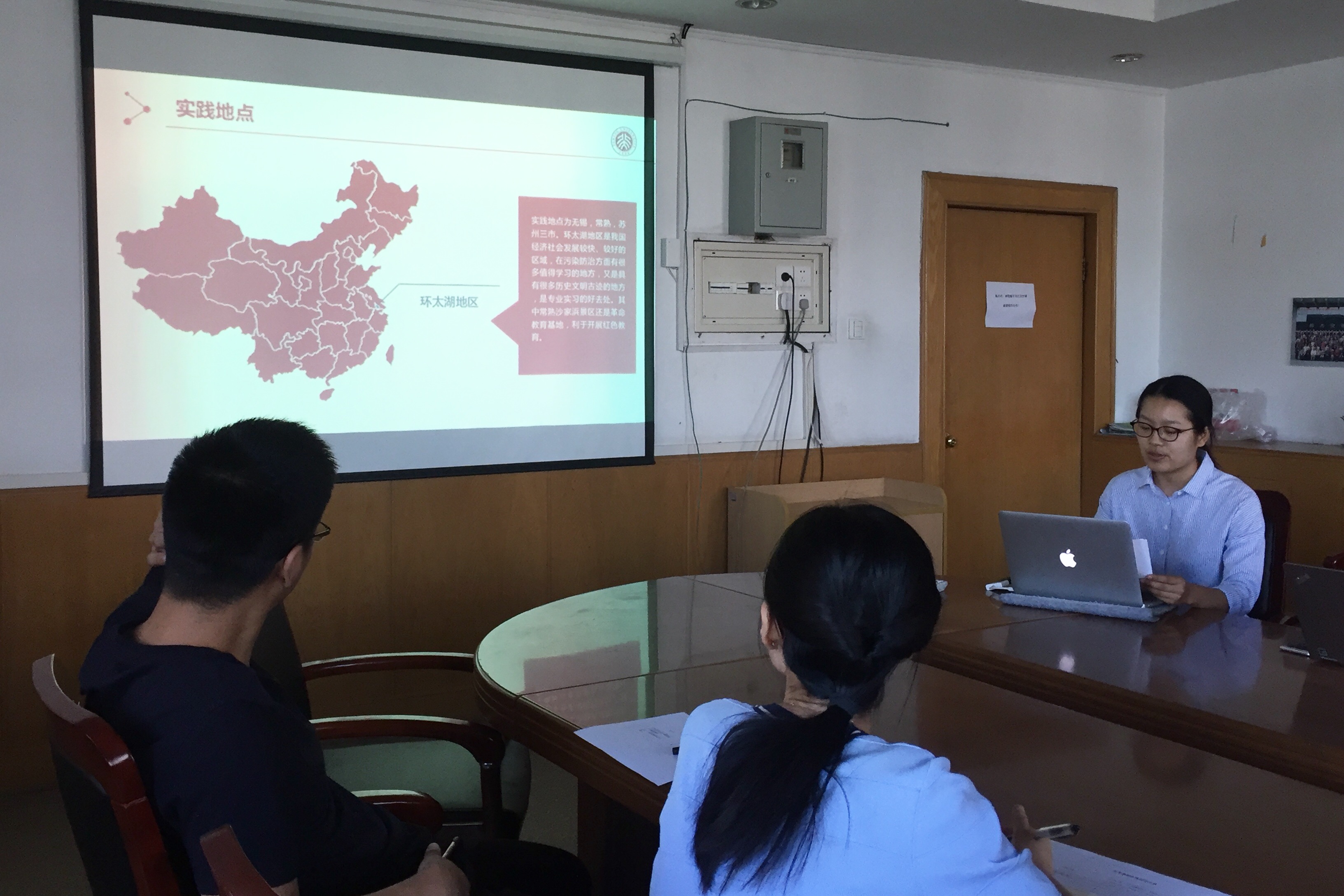 2017年暑期实习实践评优答辩会在逸夫二楼3264教室举办。由全院本科生、研究生共同组成的五支实践团先后进行了活动情况汇报。答辩会由院团委书记、学工办主任王宇凡老师,学工办副主任刘耕蒲老师,院团委常务副书记关汉岳老师,研究生骨干聂艺菲担任评委。 图一.评优会现场 首先,城乡规划班天津实习实践团汇报了实践组织情况。实践活动以“寻北方局革命遗迹,探京津冀发展之路”为主题进行了全方位的调研,并在实习期间,于中共北方局旧址举办了“重走先辈斗争路,青春喜迎十九大”党团日活动,学习感受中国共产党奋斗的光辉历程。接着,盐亭调研实践团汇报了考察的成果。盐亭调研以“脱贫攻坚、基础教育、文化旅游”为主题,进行了对村镇基本情况、教育情况、旅游资源利用情况和居民生活情况的调查。通过调研,实践团成员切身体会到了扶贫攻坚工作的不易和农村基层工作的艰辛,感受了西部基础教育的现状,以及发展文化旅游面临的机遇与挑战。随后,山东潍坊实习实践团汇报了调研的基本情况。调研以当地历史文化的保护与发展、产业现状、城市规划与生态建设为核心,同时关注当地探索建设“绿水青山”过程中的有益经验。在实践间隙,还进行了主题党课的活动,加深了同学们对生态建设的思想认识。接下来,环境科学班汇报了参加环太湖实习的情况。实践团抓住抗战全面爆发80周年的契机,结合水域生态环境污染治理的主题,将爱国主义教育与专业和社会实际相结合,同步提升同学们的思想认识和专业素质,增强了同学们的使命感和专业认可度,强化了爱国精神和师生情、同学情。最后,保定实践团进行了汇报。保定实践团以雄安新区为主要调研区域,以“改革之路,基层之声”为实践主题,立足雄安,面向京津冀。实践团重点调研了大淀头村等一系列具体的基层村落,全面的走访了解村民的生活状况,真正考察了以雄县为代表的雄安新区地区民众生活的情况。实践团还结合京津冀一体化、雄安新区国家战略和地区的生态安全格局进行了进一步的研究。 图二.天津实践团汇报 图三.盐亭实践团汇报 图四.山东潍坊实践团汇报 图五.环太湖实践团汇报 图六.雄安实践团汇报 各实践团的报告结束后,院团委书记王宇凡作总结发言。王老师祝贺实践团同学们在实践过程中取得了让人意想不到的成绩,获得了很多有意义的收获。她指出,琉璃神社