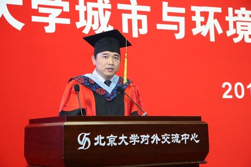2018届学生毕业典礼在英杰交流中心阳光大厅成功举行。学院院长贺灿飞老师、党委书记刘耕年老师、院友代表黄友琴以及学院其他领导和导师、班主任、任课教师、行政教辅代表出席了典礼活动,参加典礼的还有2018届200多名本、硕、博毕业生及部分毕业生家长。典礼由学院副院长金鑫老师主持。 典礼现场 副院长金鑫老师主持毕业典礼 典礼开始前,毕业生们纷纷在“城因有你,青春不负”毕业纪念签名墙上签名、合影留念,一笔一划写下的是收获的喜悦,一光一影留住的是离别的不舍。同样带给大家惊喜的还有学院为全体毕业生精心制作的纪念册。翻开册子,一张张笑脸,一幅幅画面,描绘的是圈地为方、绘纸成图的几载青春,诉说的是以诚相待、携手并肩的同窗情谊。 签名墙合影 十四时二十分,典礼在雄壮的国歌中正式开始。院长贺灿飞老师首先致辞。他以未名湖畔的果实为喻,祝贺大家经过辛勤耕耘顺利毕业。他强调了批判性思维、综合性思维、空间思维的重要性,希望大家能够关心自然和人类社会的共同命运,深入开展对资源-环境-生态-城市的综合系统分析,寻找人类之间休戚与共的生存模式以及人类与自然和谐相处的方案。他鼓励大家要特别领会总书记的殷切期望,既要做追梦者,更要做圆梦人,要求真学问,练真本领,努力成为知行合一的实干家,做推动我国生态文明建设的实干家。 院长贺灿飞老师致辞 随后,88级院友、美国纽约州立奥尔巴尼大学地理与规划系教授、奥尔巴尼大学中国文化与经济孔子学院院长,奥尔巴尼大学社会与人口研究中心研究员黄友琴分享了她在北大学习的经历与体会。她寄语师弟师妹们要珍惜宝贵的同学情、师生情;劝勉即大家要有使命感与正义感,要学会淡定从容、荣辱不惊地运用自己的知识和技能报效祖国、改变世界。致辞之后,党委书记刘耕年代表学院向黄友琴院友赠送了她当年的本科毕业论文副本和学院今年的毕业文化衫留做纪念。 院友代表黄友琴教授致辞 党委书记刘耕年老师向黄友琴赠送纪念品 2014级本科地生班班主任蒙吉军老师代表学院教师发言。蒙老师回忆了与同学们一起在全国各地实习的足迹,也祝贺同学们顺利完成学业。面对新的征程,蒙老师希望同学们在未来的学习工作中要懂得担当、懂得合作、懂得创新,祝福同学们事业有成、生活幸福。 教师代表蒙吉军老师致辞 紧接着,2014级本科毕业生代表张晓华发言,她表达了对学院老师、父母家人和同学们的感谢,并希望北大所赋予的独立的思想与自由的精神,能够让同学们在今后的成长道路上,真正关注生活和生命的本质。2015级硕士研究生代表上官淮亮回顾了自己在北大、在城环的三年时光。即将走上选调岗位的他,也结合自己的职业规划,分享了地理人“为天地立心,为生民立命”的天然使命感和责任感。 本科毕业生代表张晓华发言 研究生代表上官淮亮发言 满含深情的语言道不尽喜悦与不舍,毕业生特别节目《青春大概》将大家的情绪推向高潮。“在花落时结果,期望很多,青春大概都这样过。也许还有遗憾,甚至很多,但是相信懂你没有白活!”,相信这是所以毕业生们的心声,也许不免有遗憾,但是所经所历都是城环人的最好回忆。 毕业生特别节目 今年毕业典礼,学院还增设了2018年琉璃神社