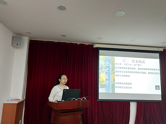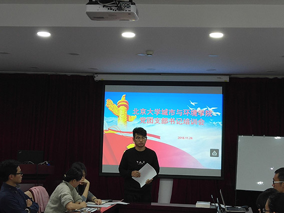 为国家培养生态、环境、规划、资源方面的创新型人才,希望大家可以积极联络学院支部内外的老师、同学,为广大同学提供帮助,培养更多优秀的人才纳入党团组织中,营造团结和谐的氛围,发挥学院特色,提升学院活力。 图二.刘耕年致辞 随后,学院党委副书记张新平致辞,张老师表示此次培训是学院首次党组织学生骨干与共青团学生骨干的联合组织会议,旨在加强党、团统筹协调工作。学院历来重视青年工作,并且具有较好基础,在全校范围内具有较高口碑。张老师带领大家共同重温了中国共产主义青年团的入团誓词与中国共产党的入党誓词,希望大家不忘使命,加强与学院老师、同学的联系,携手推动学院青年工作建设。 图三.张新平致辞 为了配合党团学生骨干更好地组织开展理论学习活动,学院为每个团支部配备了一套学习书籍,刘耕年老师与张新平老师共同为团支书代表赠书,17级博士生团支书赖海成作为代表接收赠书。 17级博士班团支书赖海成代表接受赠书 培训环节由四部分组成,分别是学院党员发展流程培训、北京市组工系统操作培训、团支部推优入党及党团日主题活动部署、跨院系优秀党支书分享交流。 学院综合党务办公室主任刘萍对党员发展流程进行了具体工作的部署。为了帮助党团干部更好的开展工作,刘老师结合学校党员发展工作细则、党务工作经验,为各位党团干部整理分发了党员发展流程简化版材料,分为党员发展流程(个人版)、党员发展流程(支部版)、发展档案标签以及入党材料写作各类说明。刘老师结合学习材料,通过细致具体的讲解剖析了党员发展完整流程,在重要发展环节讲解过程中,刘老师还结合丰富的党务工作经验,强调材料细致完整的重要性,并适时提醒注意事项,意在减少党团干部在工作中不必要的“弯路”。最后,刘老师还对党务经费管理做出了介绍与部署。 刘萍老师进行党员发展流程培训 学院培训办公室许文君介绍了北京组工系统的使用,并演示了相关操作。北京组工系统是北京市委组织部主办的基层党建综合管理平台,许老师介绍了平台党内信息系统管理、党员E先锋的使用方式与管理操作,提醒各位做好年底党统工作,以及支部内党员流动系统相关操作。 许文君老师演示北京组工系统操作 学院团委常务副书记关汉岳进行了学院党团日主题活动、团支部推优入党相关工作的介绍。在党团日主题活动的建设方面,关老师介绍了学院的“活力团支部”活动,鼓励大家响应学工部部署,积极开展党团联合活动,还介绍了近期的“志愿北京”注册工作与学院的志愿活动组织情况,并提醒党团干部及时为志愿者录入服务信息。关老师随后介绍了即将开展的入党积极分子团支部推优工作,指出该工作的严肃性,这是共青团支部为党组织提供优秀后备军的重要环节,团支部应做好积极的引领与引导作用,认真开展工作,确保覆盖所有同学。 关汉岳老师介绍团日活动与推优工作 最后是跨院系优秀党支书交流分享,分别是来自基础医学院于佳弘同学、工学院2016级硕士陈善恩同学。 于佳弘同学以“无限风光在险峰”为分享主题,从基本情况、支部建设、支部生活、特色活动四方面分享了自己的党支书工作经历,认为党团学生干部尽管辛苦,但是却承担着“领头雁(表率作用)、当家人(管好队伍)、粘合剂(融洽关系)”的重要作用,于佳弘带领的支部开展了丰富多彩的活动,力求深入基层、服务他人、服务社会,并与专业结合,充分调动参与的积极性。 于佳弘同学分享党支书工作经验 陈善恩同学分享经验时认为党支书不要做光杆司令,“班子给力”很重要,并针对一些“影子党员”、组织生活参加积极性不高等常见问题,提出了自己的应对方式,为各位党团干部开拓了新的管理思路。 陈善恩同学分享党支书工作经验 此次培训会响应党、团组织共建工作部署,加强学院党、团组织基层青年力量建设,提高党、团组织青年骨干的素养与工作能力,培训结合实际需求,内容丰富,安排紧凑,是一次成功的尝试。 撰稿/邱思静 摄影/侯文宇